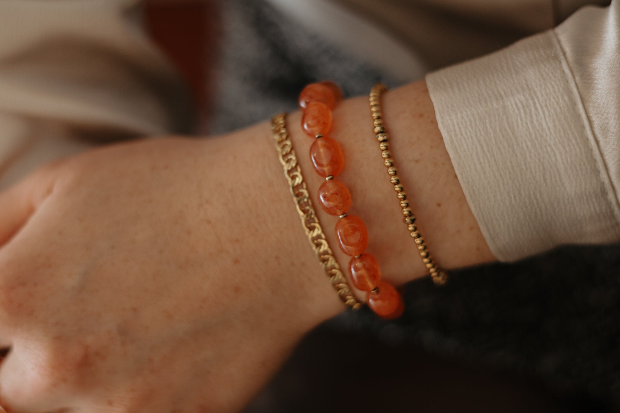 Breng de warme kleuren van het seizoen in je look met de Apricot Stone armband uit de Fall for Confidence collectie. Ontworpen om je stijl moeiteloos te versterken en je zelfvertrouwen te vergroten, zonder dat je je garderobe hoeft te vernieuwen!