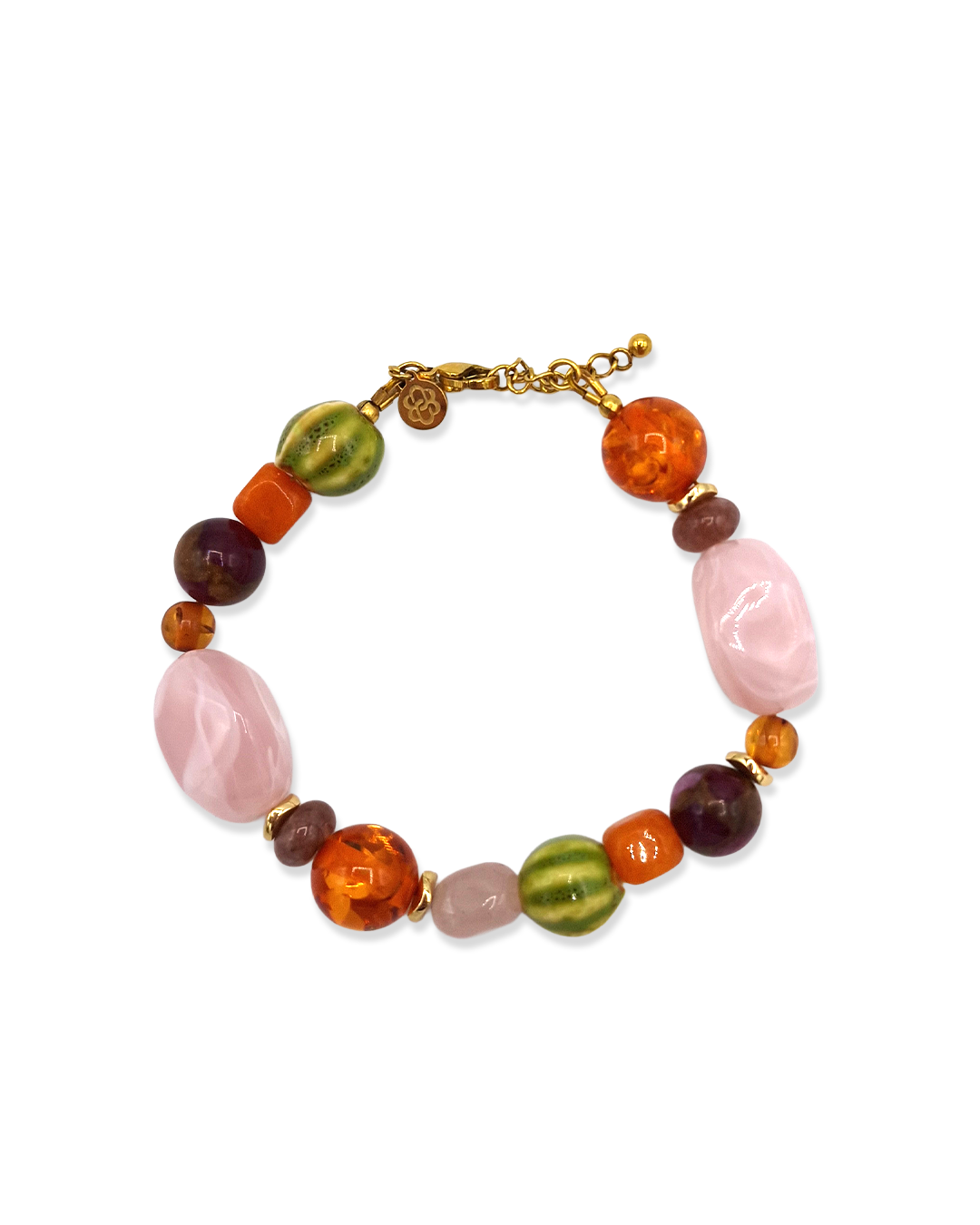 - Kleur: roze, amber, olijfgroen, paars en goudkleurige accenten