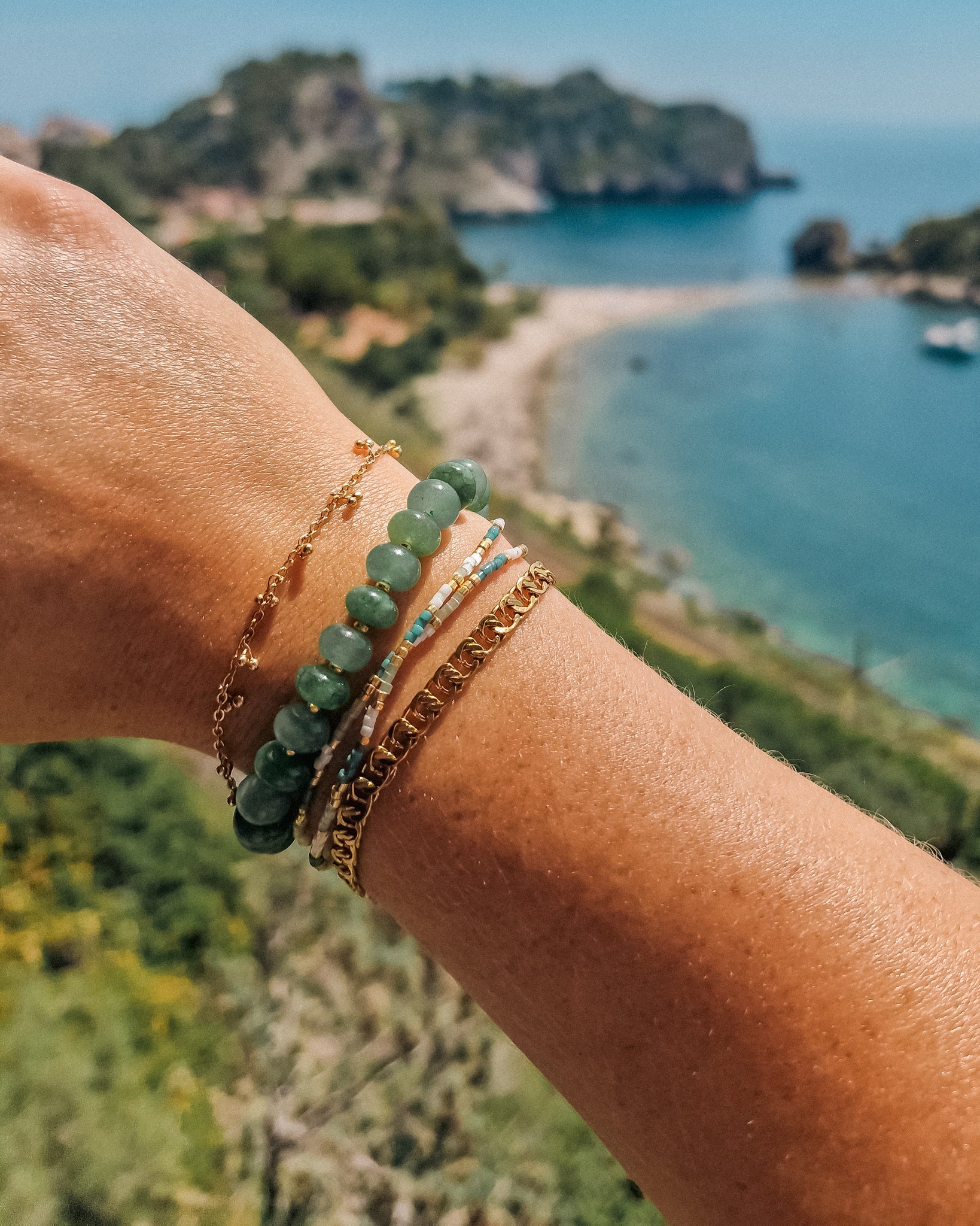 Armbandje met halfedelsteen/natuursteen kralen en kleine glaskralen in groene mix kleur. Perfect om te combineren met de Candy kettingen!