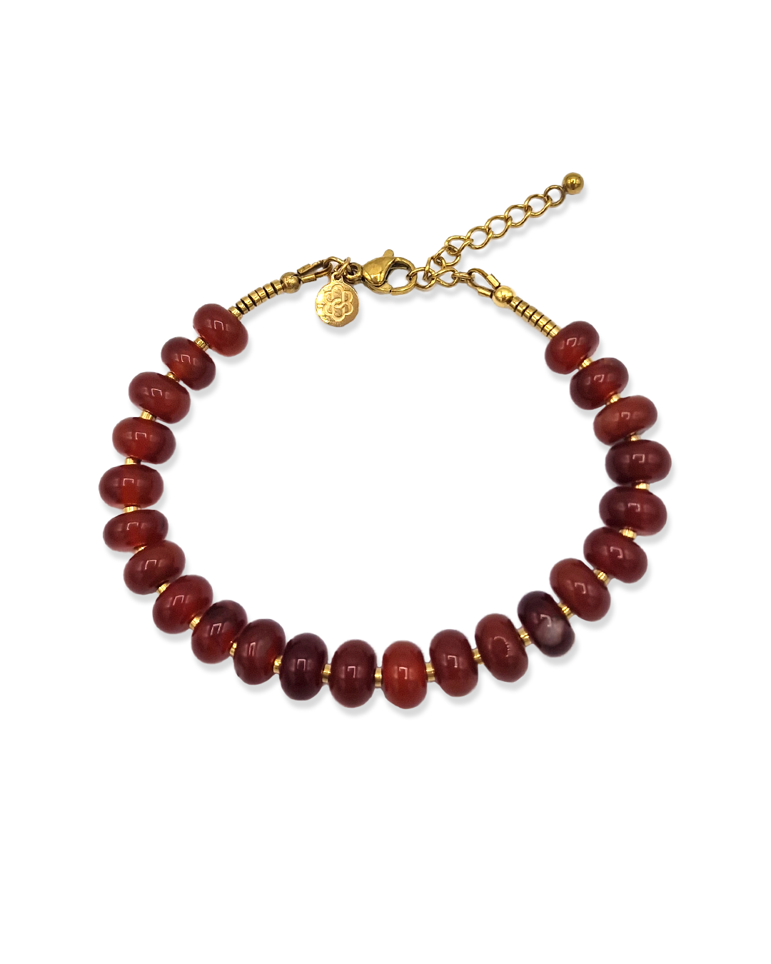 Diep, intens en vol karakter. De Candy Dark Red armband is gemaakt van robuuste, donkerrode kralen met een subtiele glans, versterkt door verfijnde gouden details. De warme, rijke tint geeft elke outfit een krachtige touch, terwijl het tijdloze design moeiteloos te combineren is. Draag hem solo voor een stijlvolle statement of mix & match voor een gedurfde look.
