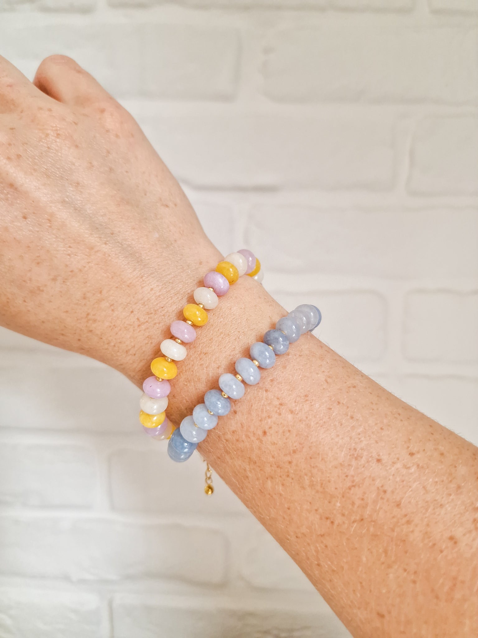 Armbandje met halfedelsteen/natuursteen kralen en kleine glaskralen in lichtblauwe kleur. Perfect om te combineren met de Candy kettingen!