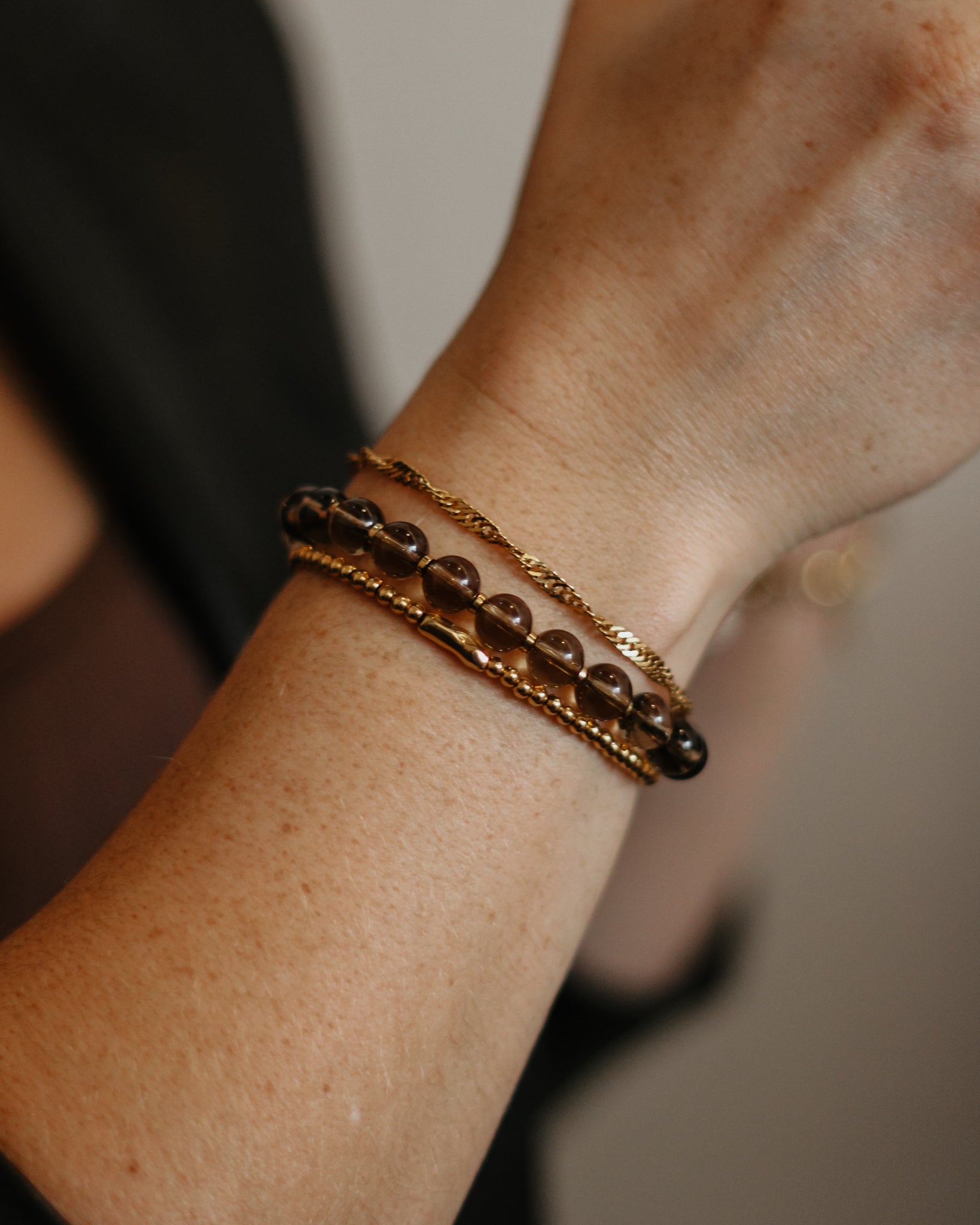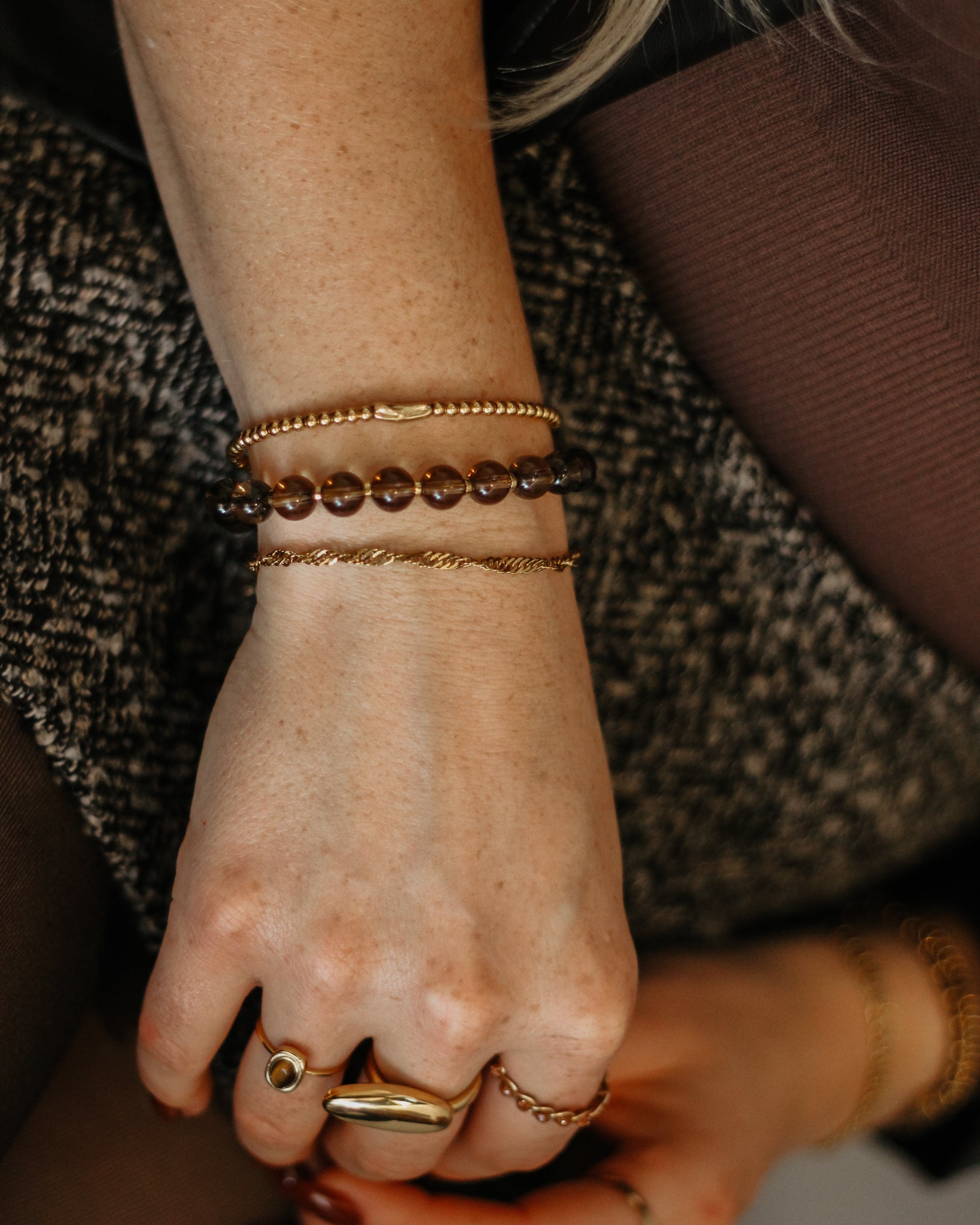 Een pretty essential! Perfect om elke dag te dragen. Door de gedraaide schakels heeft de armband ene subtiele glans die shimmeren als de schakels bewegen.