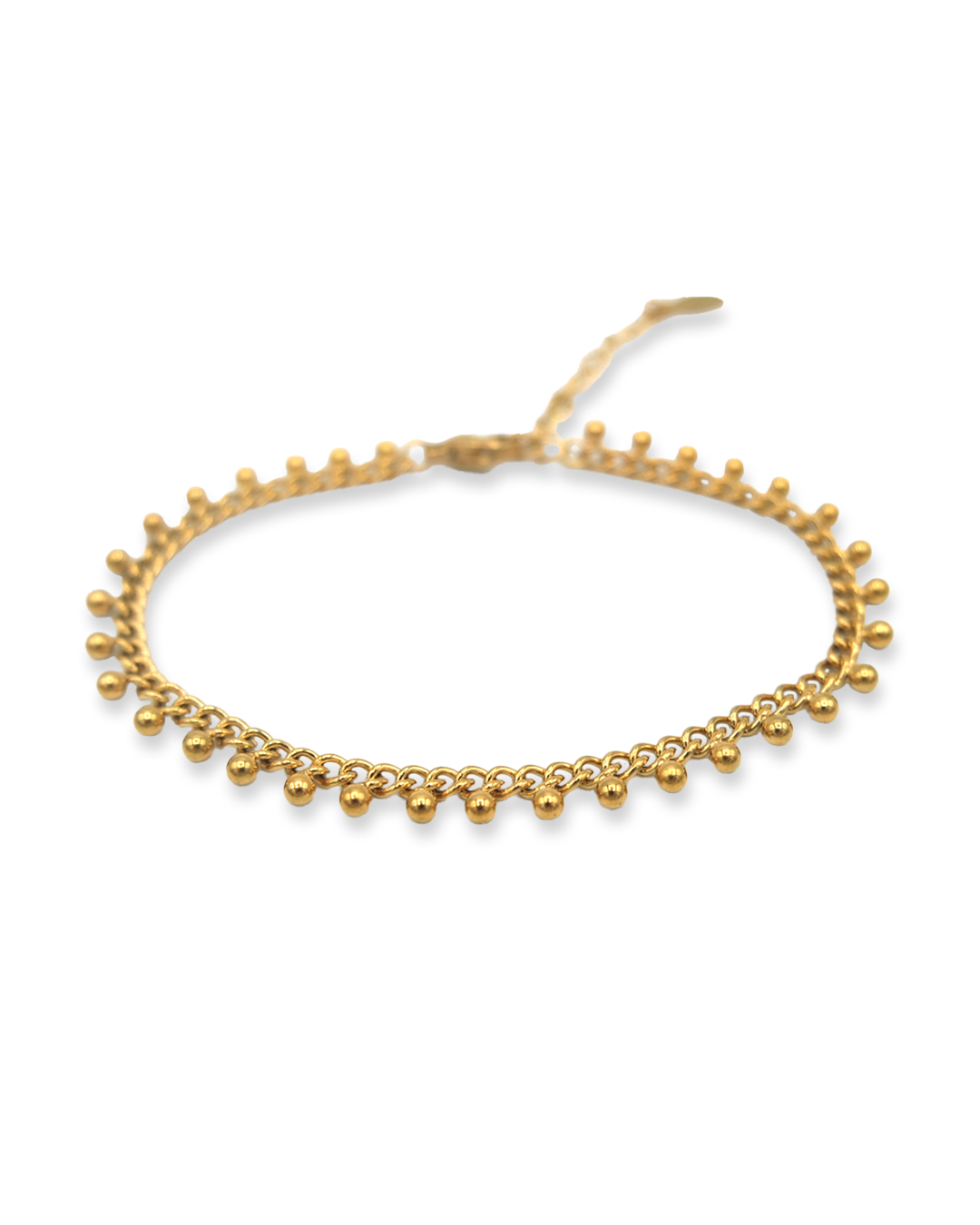 Deze armband met kleine metalen bolletjes is 16cm en kan met het verlengkettinkje 3cm langer gemaakt worden. Verkrijgbaar in stainless steel goud en stainless steel zilver. De armband is gemaakt van roestvrijstaal, dus verkleurt niet!