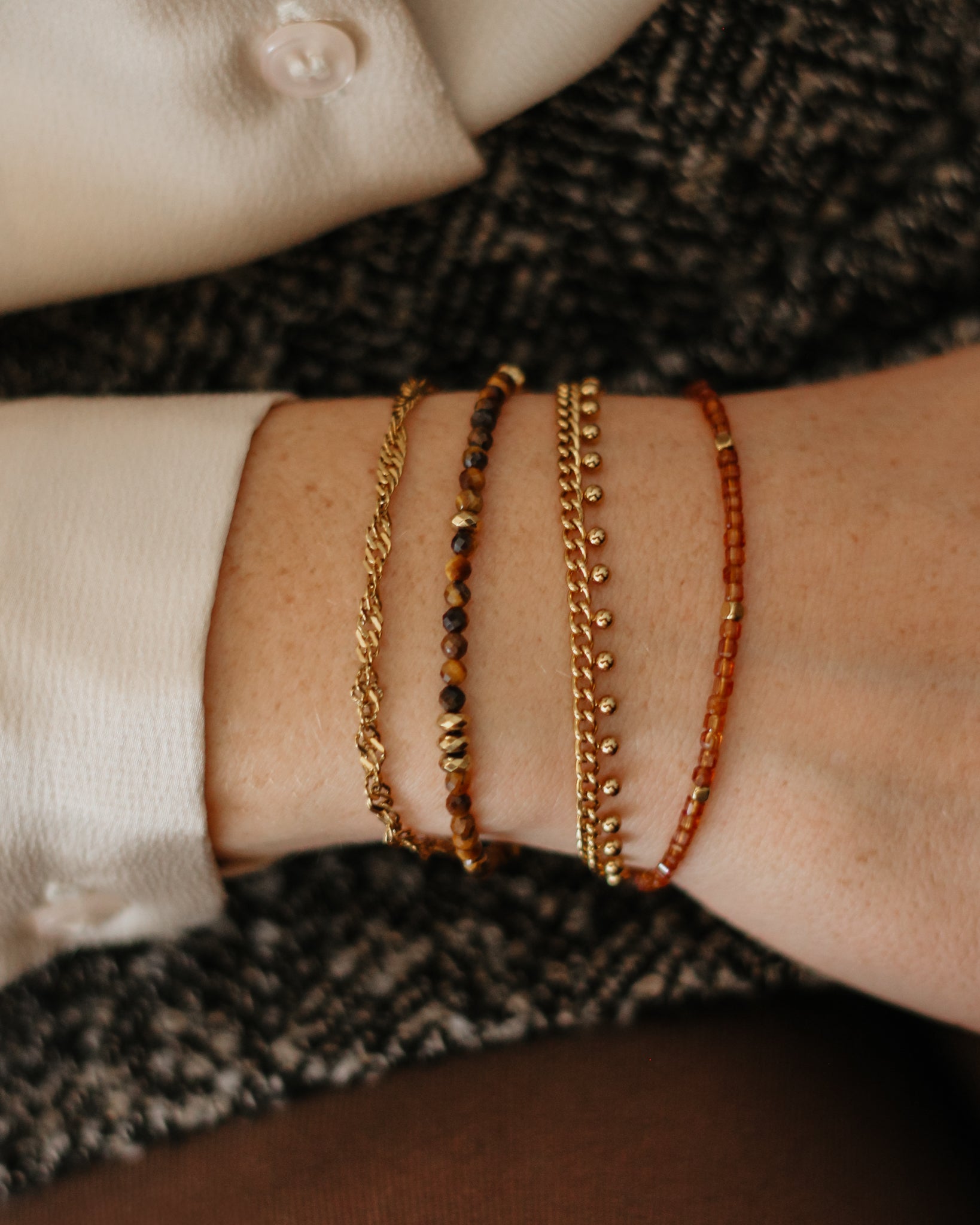 Onze sieraden zijn gemaakt van hoogwaardige materialen die niet verkleuren en lang mooi blijven. Toch kun je met de juiste zorg hun glans en uitstraling nog langer behouden.✨