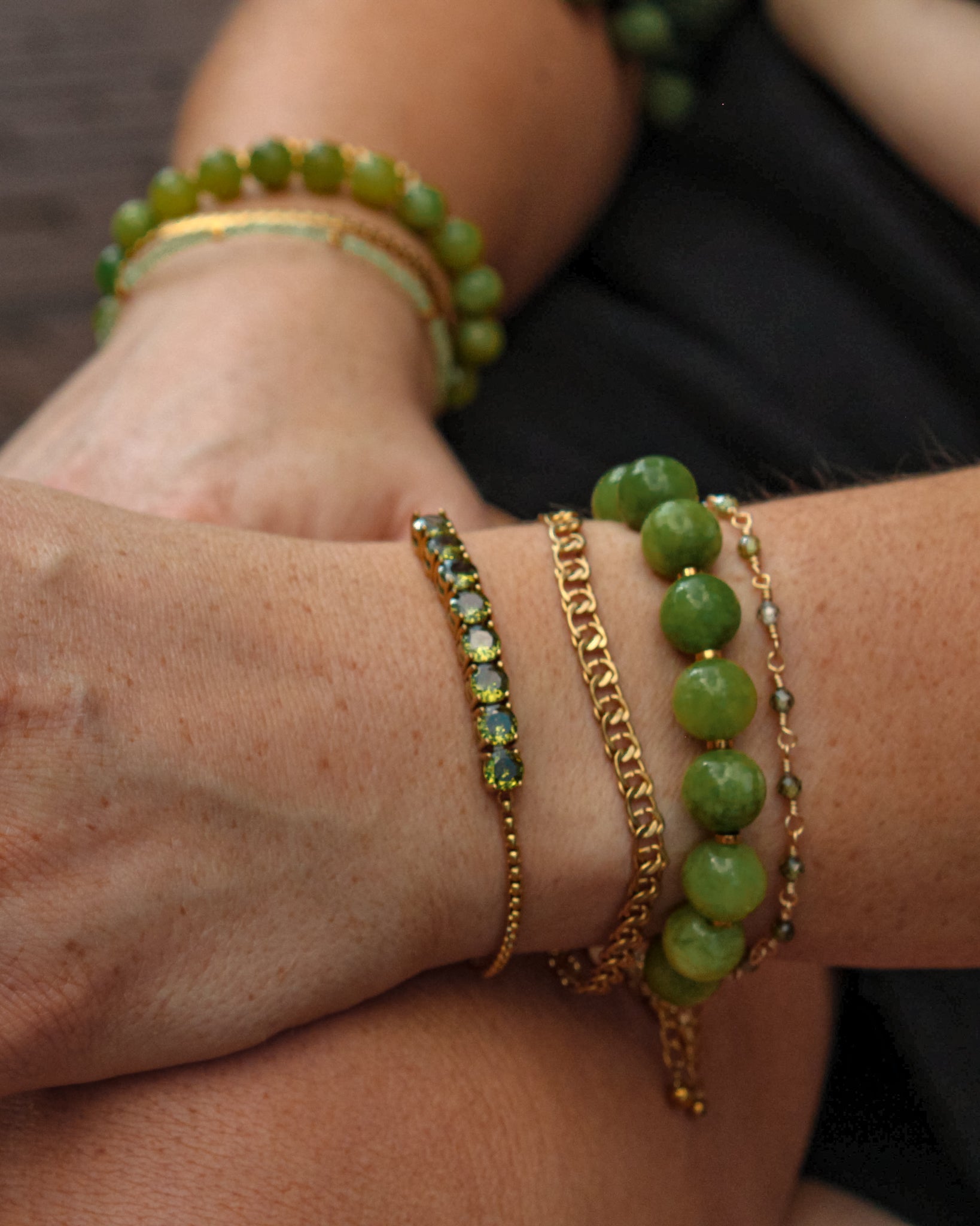 Breng de warme kleuren van het seizoen in je look met de Matcha Green Rhinestones armband uit de Fall for Confidence collectie. Ontworpen om je stijl moeiteloos te versterken en je zelfvertrouwen te vergroten, zonder dat je je garderobe hoeft te vernieuwen!