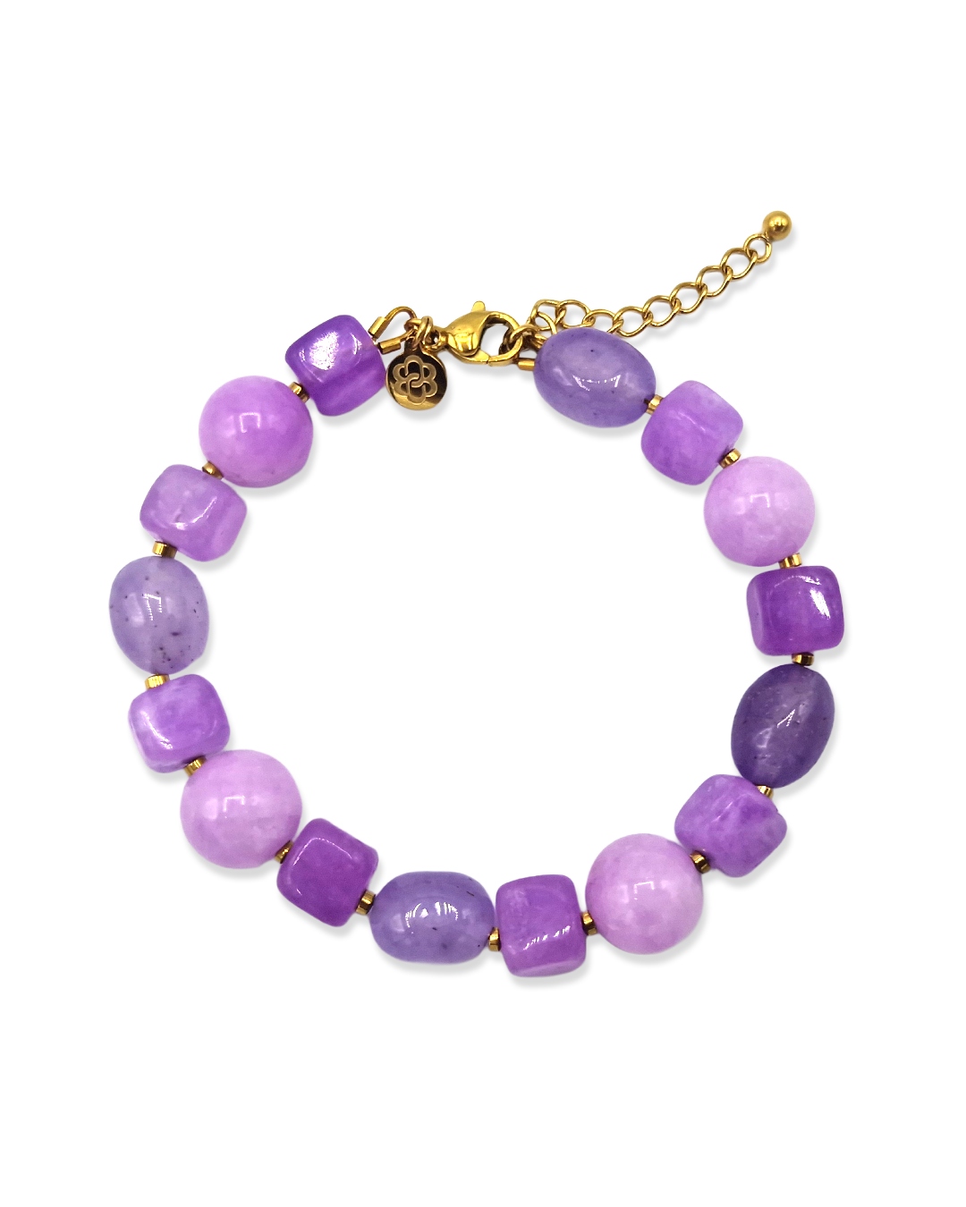 Dit is paars met pit. Van zachte lila tot bold violet: deze armband mixt vormen én tinten tot een opvallend geheel dat jouw vibe versterkt.