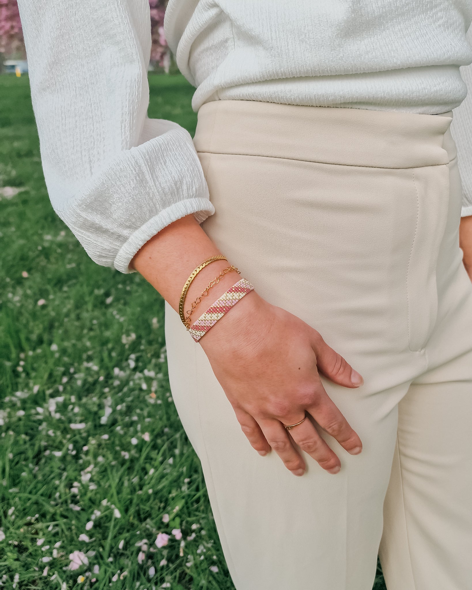 Paulina Michalewska Zoals op foto alleen een ringetje is niet goed gesloten waardoor er armbandjes, en kleding aan blijft hangen