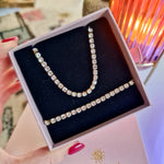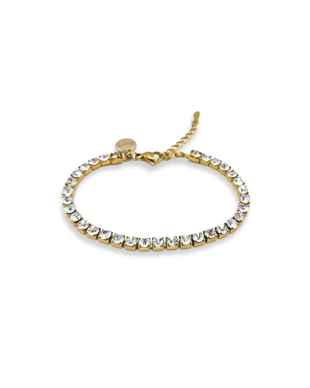 Laat je outfit shinen, dag en nacht, met deze tennis armband! De glasstenen op deze ketting zijn gewoonweg magisch en laten je stralen bij elke beweging. Het is de ultieme manier om je look op te fleuren en wat bling toe te voegen.