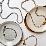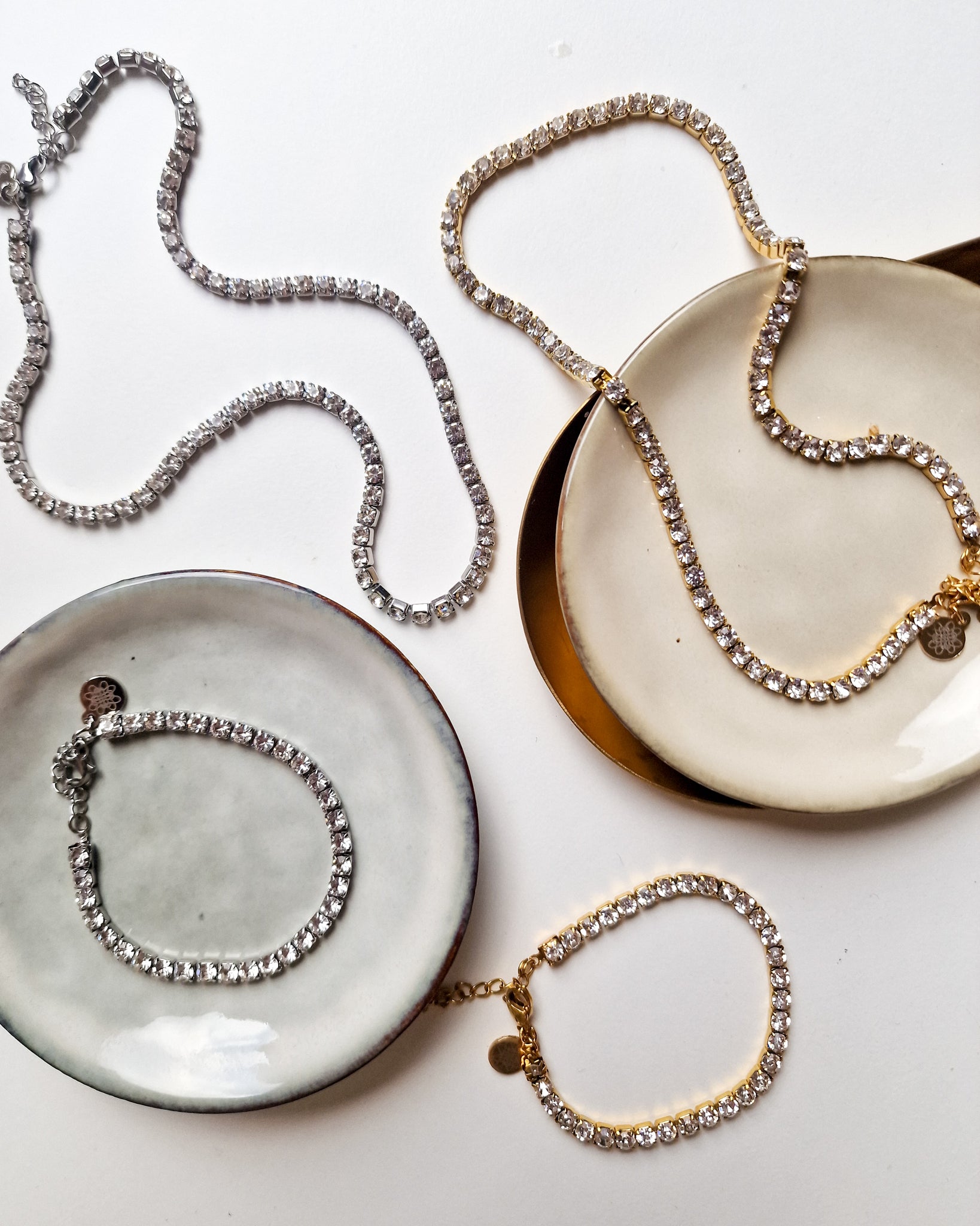 We hebben 'm gemaakt met prachtige transparante glasstenen en roestvrij staal, zodat 'ie niet alleen mooi is, maar ook nog eens lekker lang meegaat. En je hebt keuze! Ga je voor de klassieke zilveren vibe of voor een gouden touch?