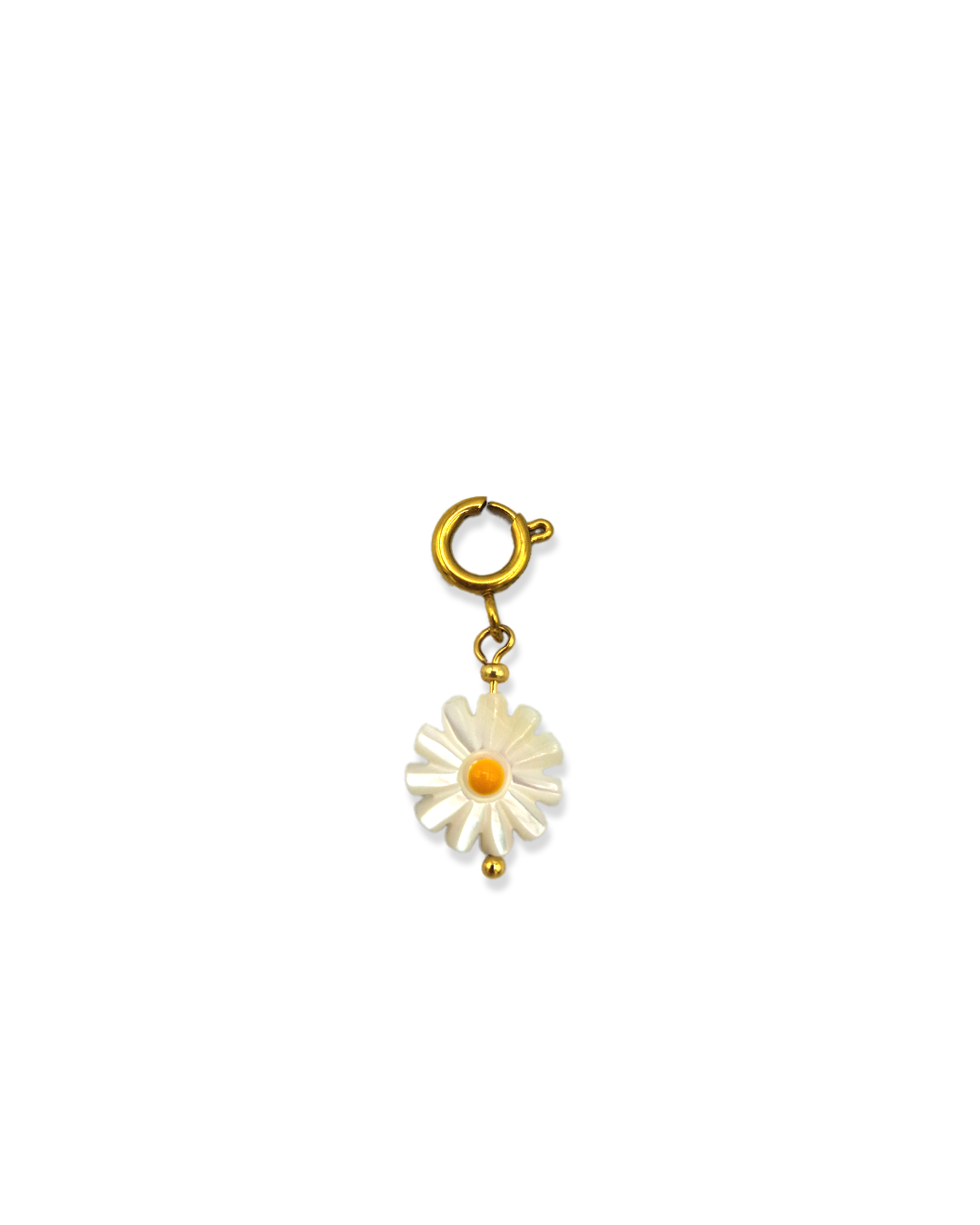Bloem bedel met slotje en hele leuke witte daisy/margriet bloem! Makkelijk te hangen aan schakelkettingen of -armbanden.