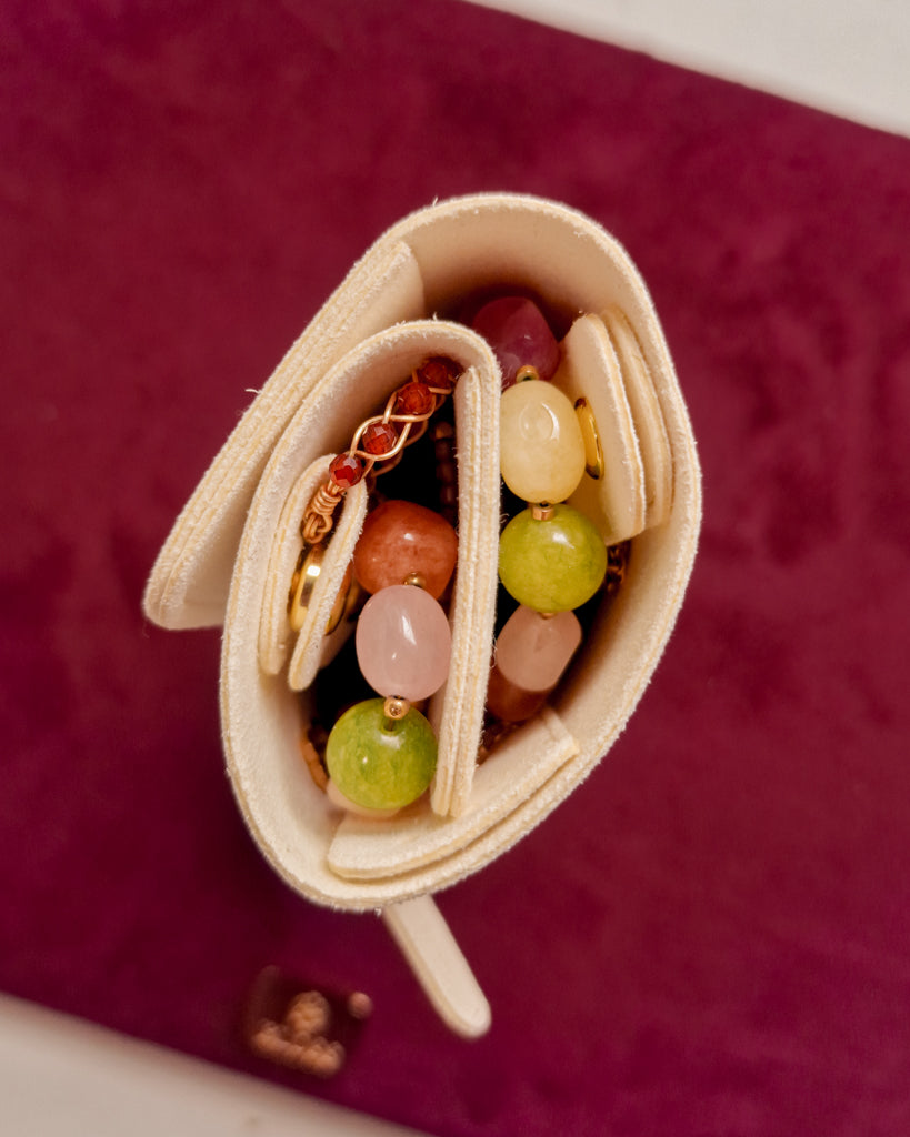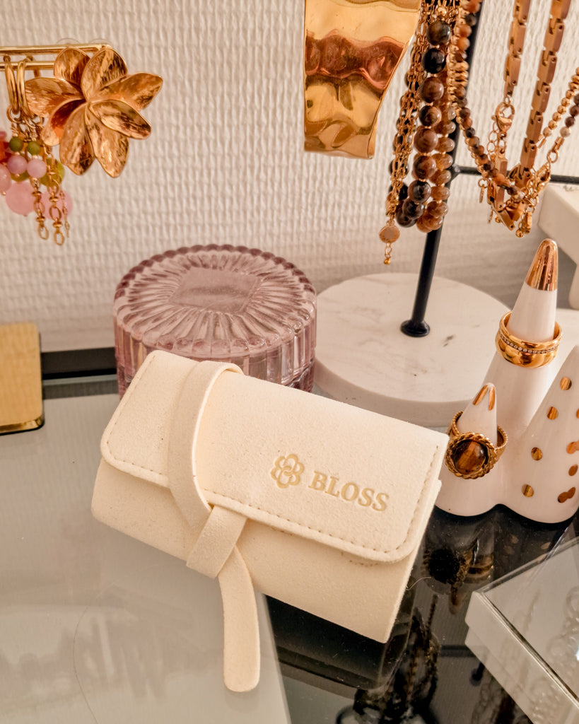 Op zoek naar een stijlvolle sieraden organizer voor onderweg? De BLOSS Jewelry Organizer is dé travel essential voor iedereen die haar sieraden veilig, overzichtelijk en tangle-free wil houden. Deze compacte sieraden etui is gemaakt van lichtgewicht microvezel met een luxe leather look en past moeiteloos in je handtas of koffer.