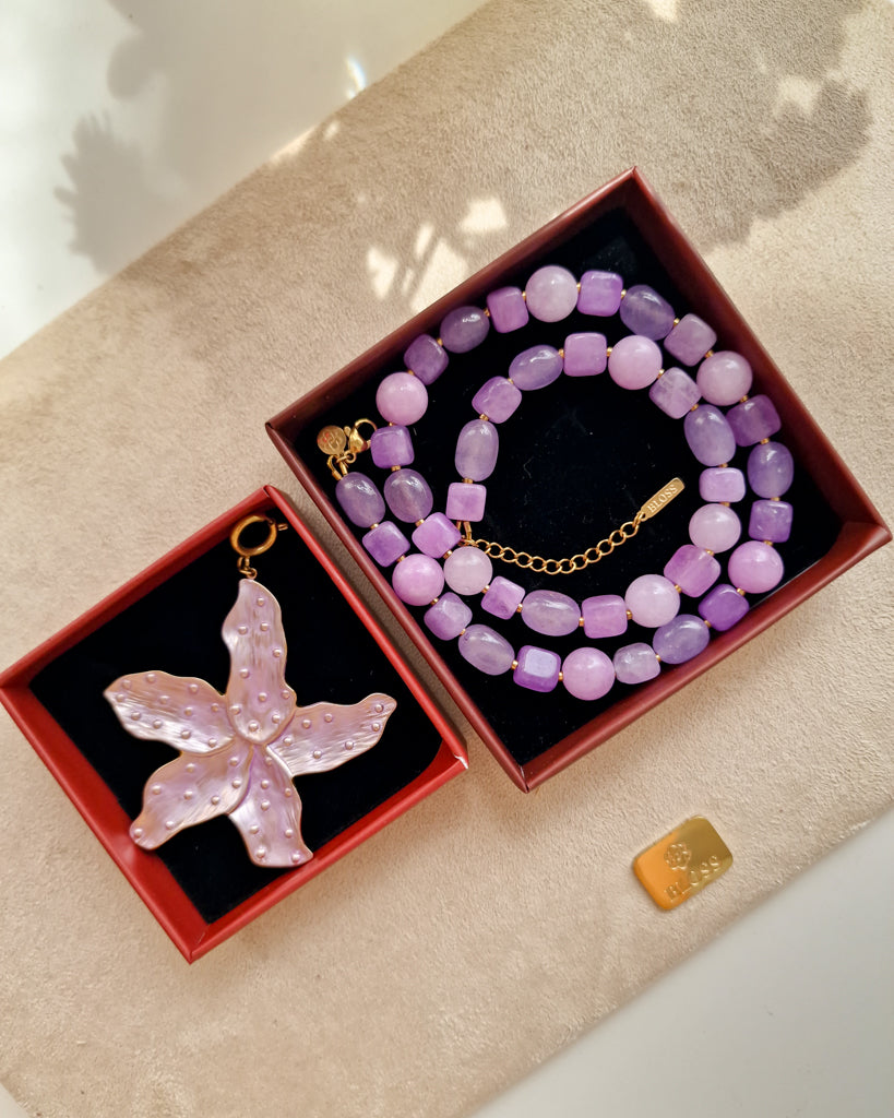 Zin in iets opvallends dat tóch bij alles past? Deze zeester hanger met parelmoer finish heeft precies die vibe. Speels, zomers en een beetje bold, zonder schreeuwerig te zijn.