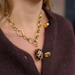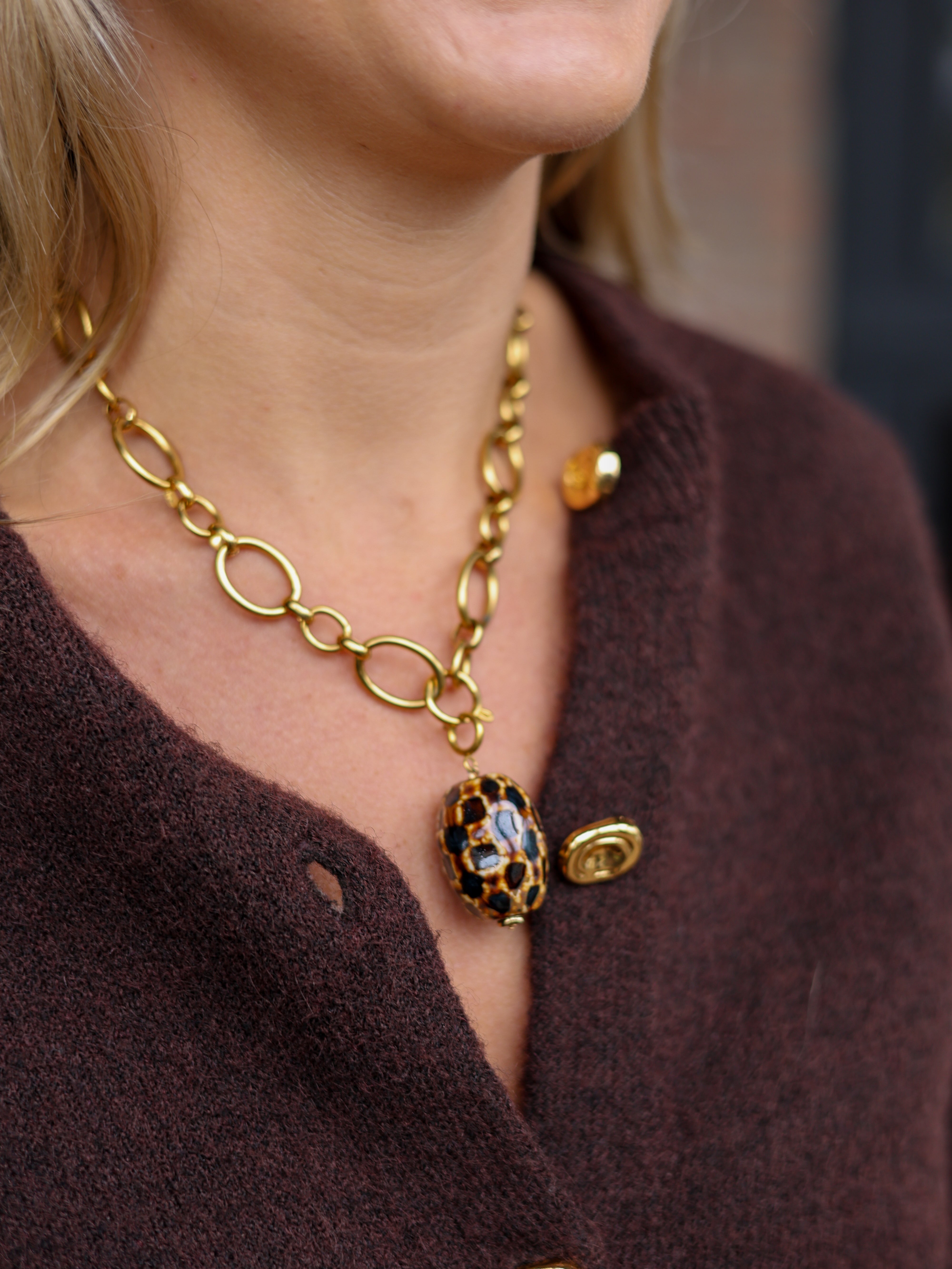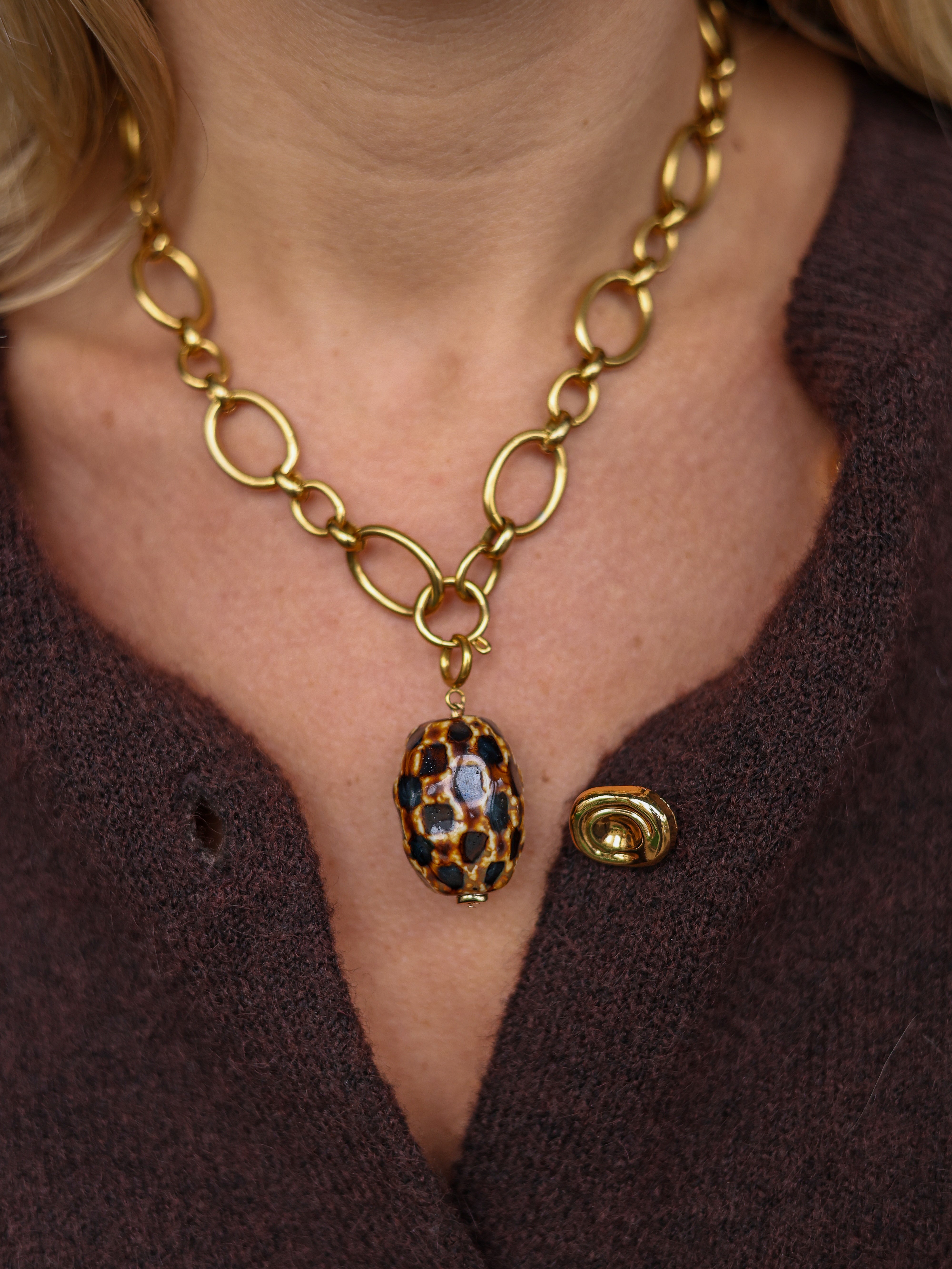 De Tortoise Form kettinghanger valt op door zijn diepe bruintinten. De organische vorm geeft hem een bold maar natuurlijke uitstraling. De hanger is gemaakt van keramiek en afgewerkt met een goudkleurig stainless-steel slotje waarmee je hem eenvoudig bevestigt aan je favoriete ketting. Perfect om solo te dragen of te combineren met andere vormen uit The Sculpt Edit.