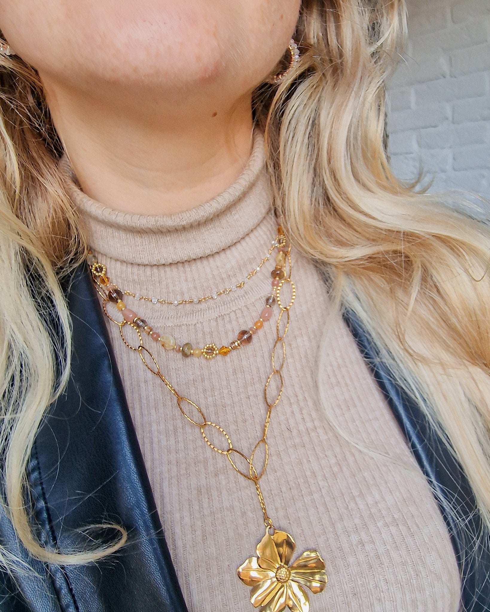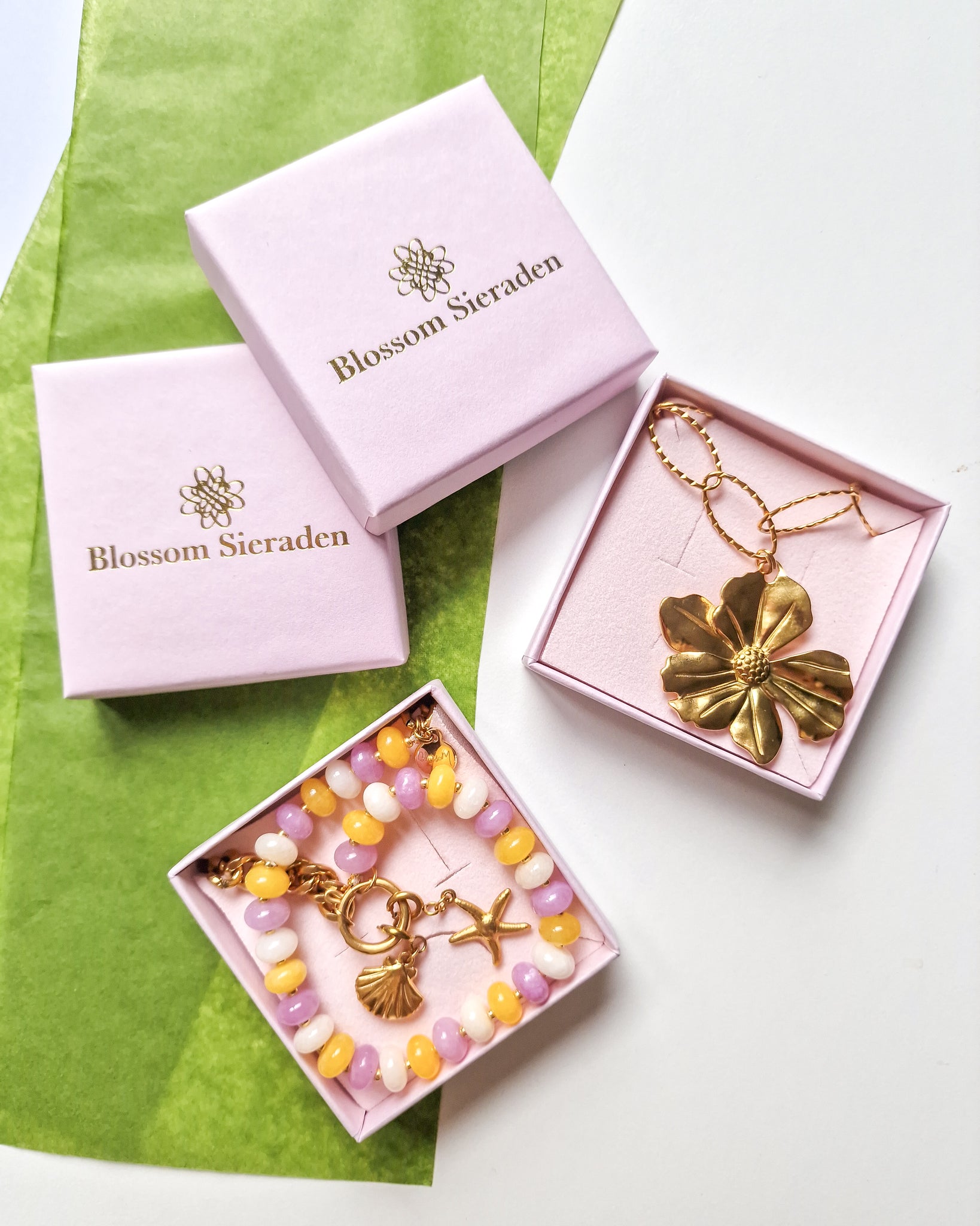 Meet dé Blossom ketting! De Blossom Flower ketting is perfect om te layeren met andere kettingen en past bij elke outfit. Met zijn verstelbare lengte, tot wel 59 cm, past hij moeiteloos bij elke halslijn. Of je nu gaat voor casual chic of een statement look, deze ketting is een must-have als je houdt van stijl en veelzijdigheid. Laat je creativiteit de vrije loop en mix en match naar hartenlust! Met de Blossom Flower ketting ben je altijd on-point en klaar om te stralen, precies zoals bij Blossom Sieraden past!