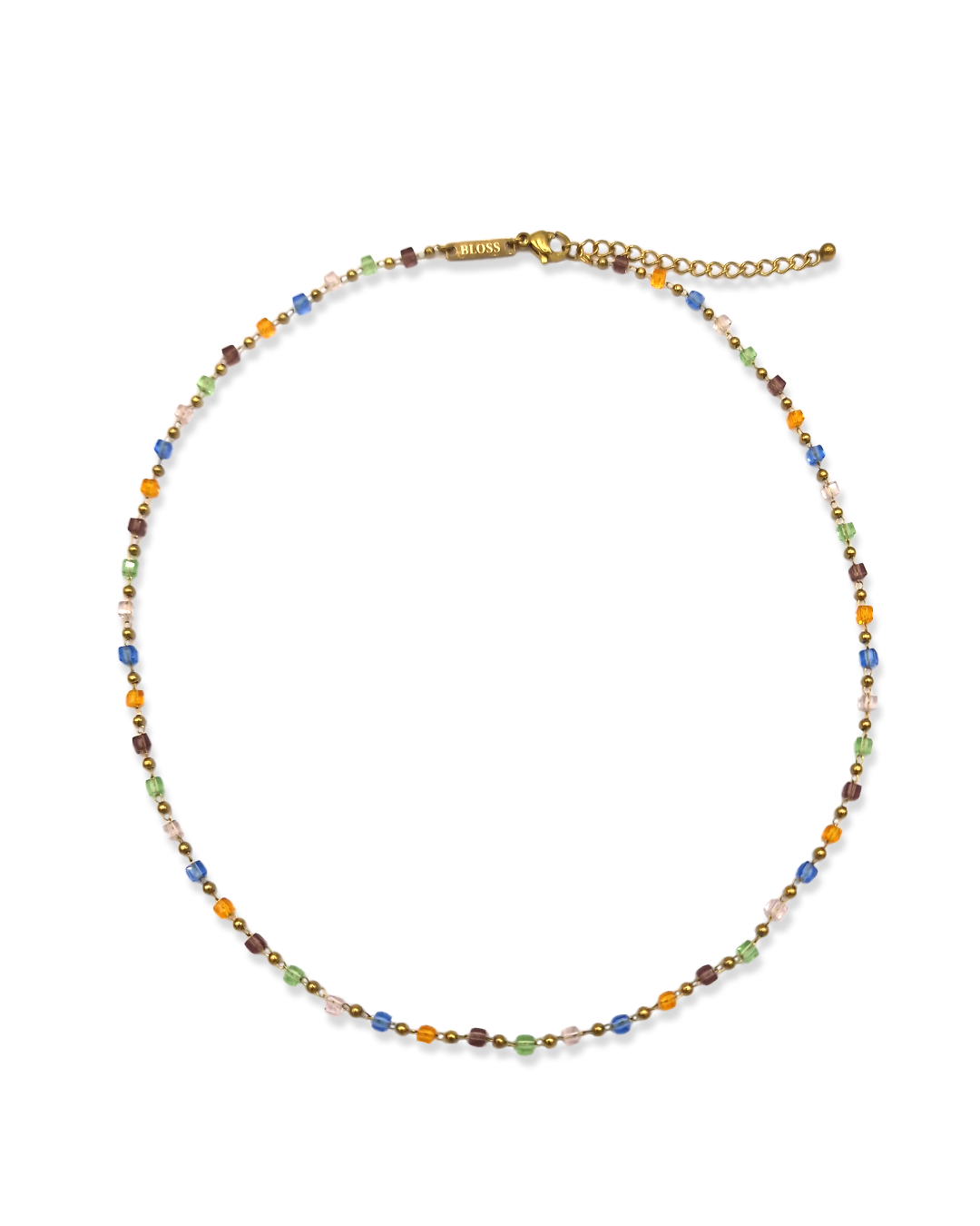 Speels, verfijnd en vol kleur. De Bright Beads ketting combineert subtiele, veelkleurige kralen met fijne gouden accenten voor een moeiteloze, vrolijke look. De mix van heldere tinten maakt deze ketting perfect om solo te dragen of te combineren met andere sieraden voor een gelaagd effect. Licht en veelzijdig—dé finishing touch voor elke outfit.