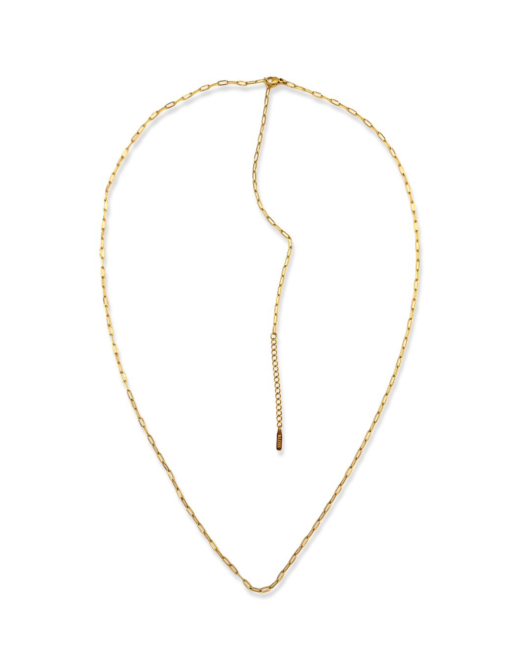 De Ketting Fine Link is een essential met een modern randje. De kleine schakels zorgen voor een verfijnde, vrouwelijke look, terwijl het glanzende goud past bij elke pendant uit The Sculpt Edit. Gemaakt van PVD stainless steel dat zijn glans behoudt en niet verkleurt. Draag hem solo voor een subtiele look of voeg één van de keramieken of gouden hangers toe voor een persoonlijk accent.