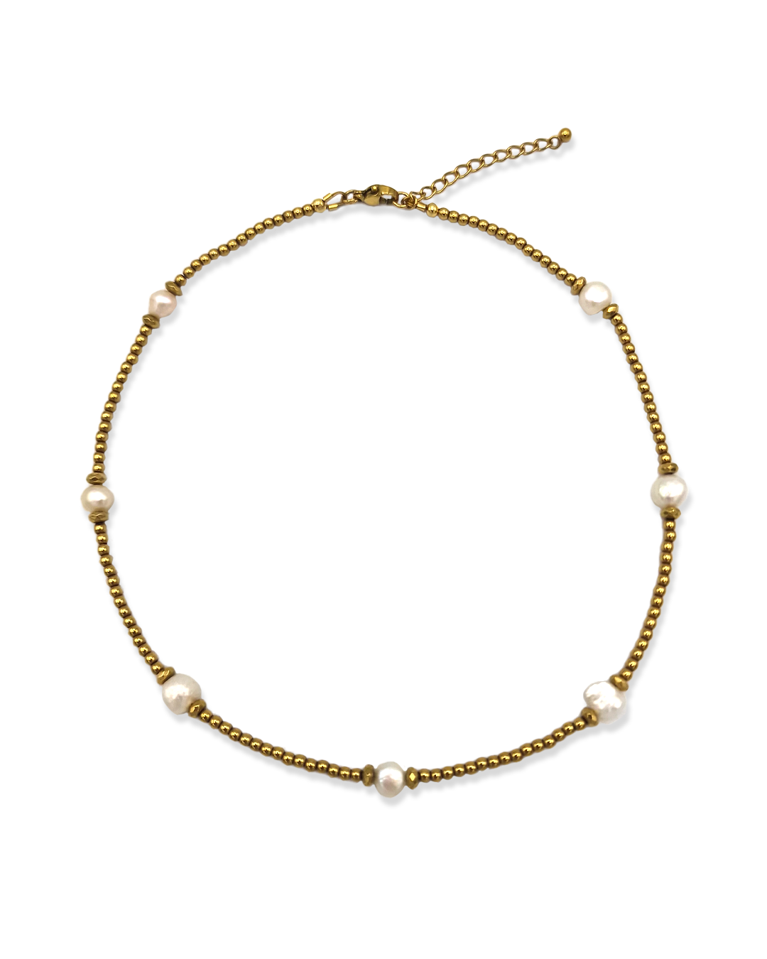 Breng de Essentials van het seizoen in je look met de Gold Beads Pearls ketting uit de Fall for Confidence collectie. Ontworpen om je stijl moeiteloos te versterken en je zelfvertrouwen te vergroten, zonder dat je je garderobe hoeft te vernieuwen!