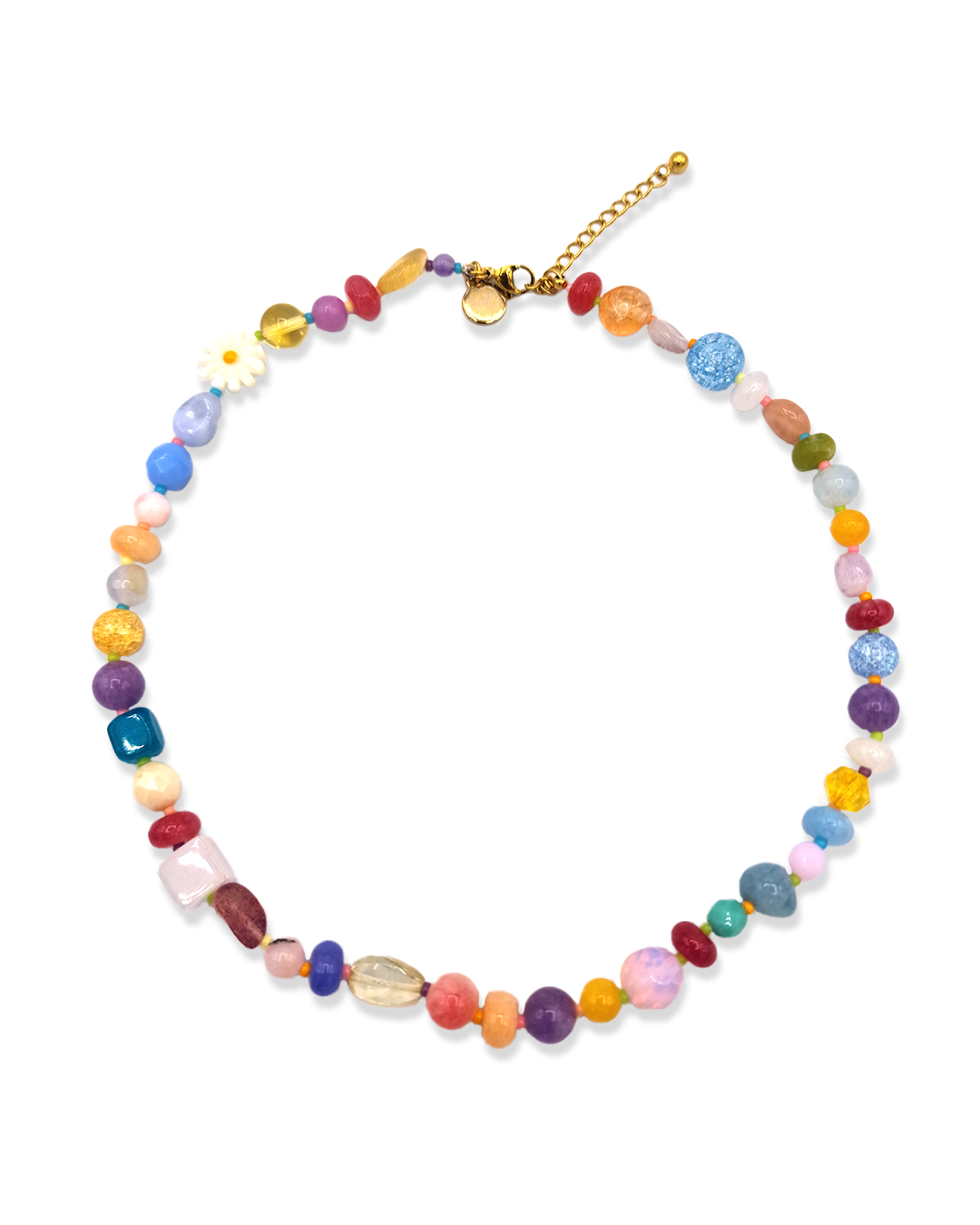 Ketting met natuursteen kralen en kleine glaskralen in verschillende kleuren