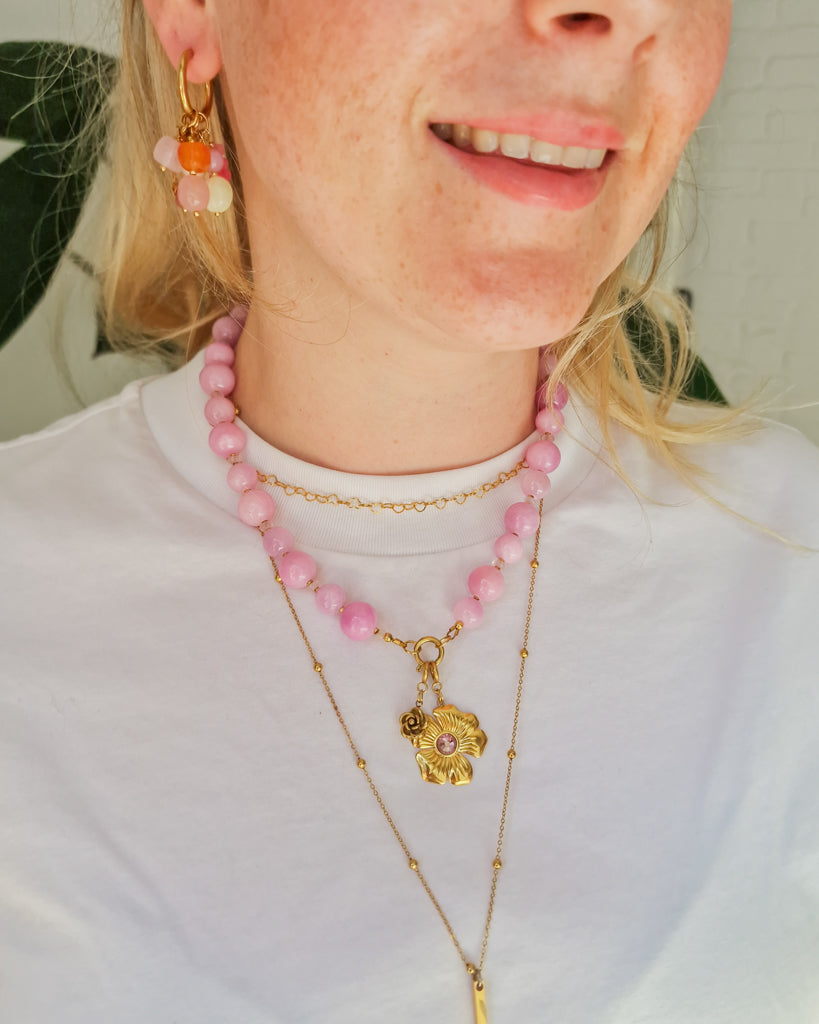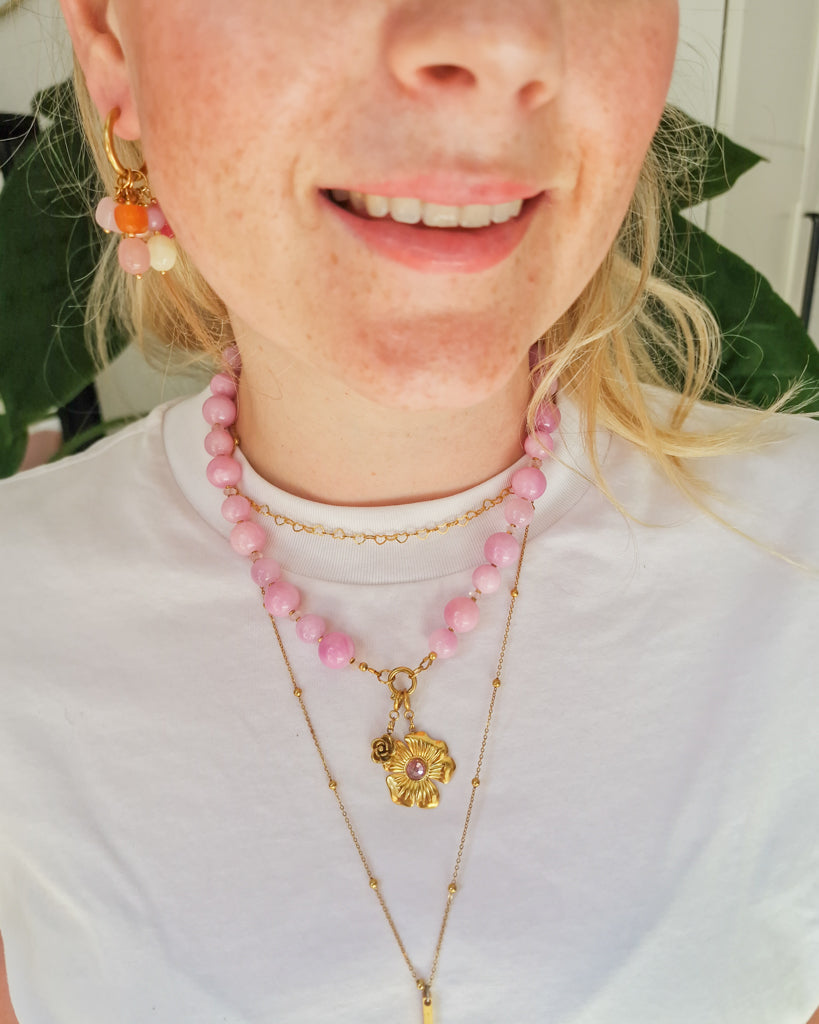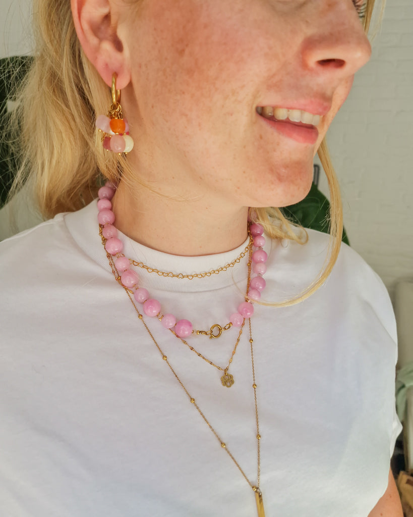 Zacht van kleur, sterk in uitstraling. De Lila Beads ketting bestaat uit glanzende, ronde kralen in tinten lila en fuchsia, afgewisseld met subtiele gouden details. De opvallende kleur en elegante sluiting maken deze ketting tot een echte eyecatcher. Perfect om je look mee op te frissen, van casual tot dressed up. Vrouwelijk, krachtig en 100% BLOSS.