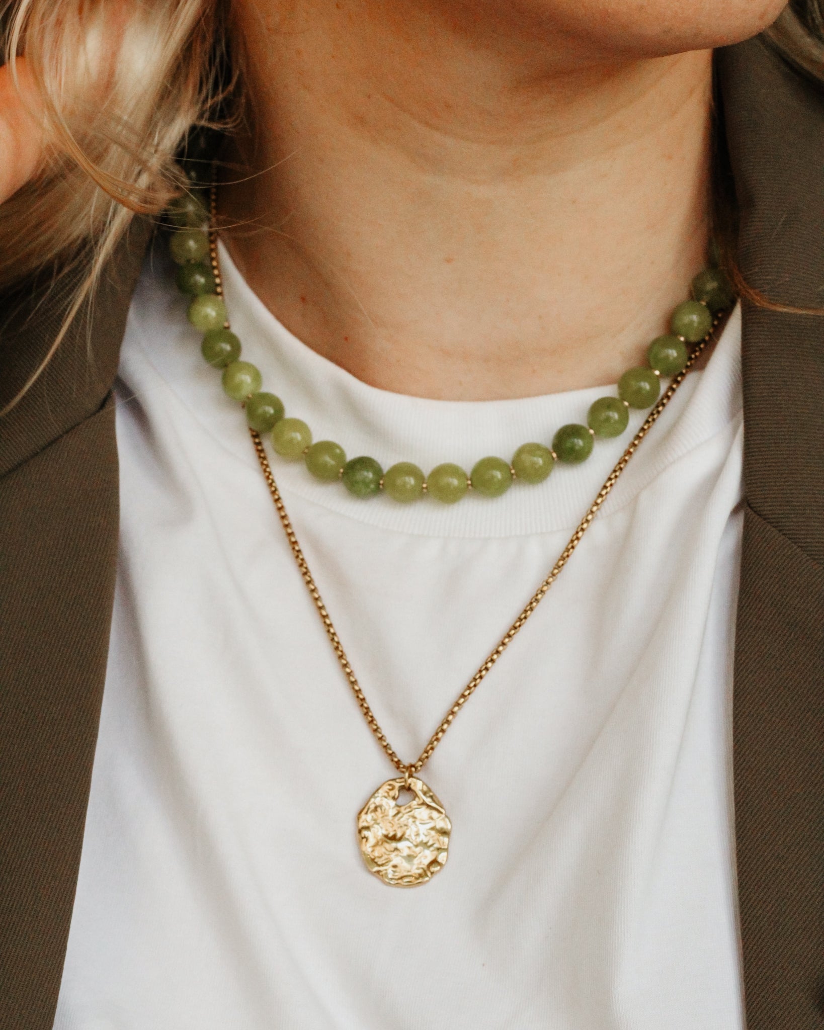 Breng de warme kleuren van het seizoen in je look met de Matcha Green Beads ketting uit de Fall for Confidence collectie. Ontworpen om je stijl moeiteloos te versterken en je zelfvertrouwen te vergroten, zonder dat je je garderobe hoeft te vernieuwen!