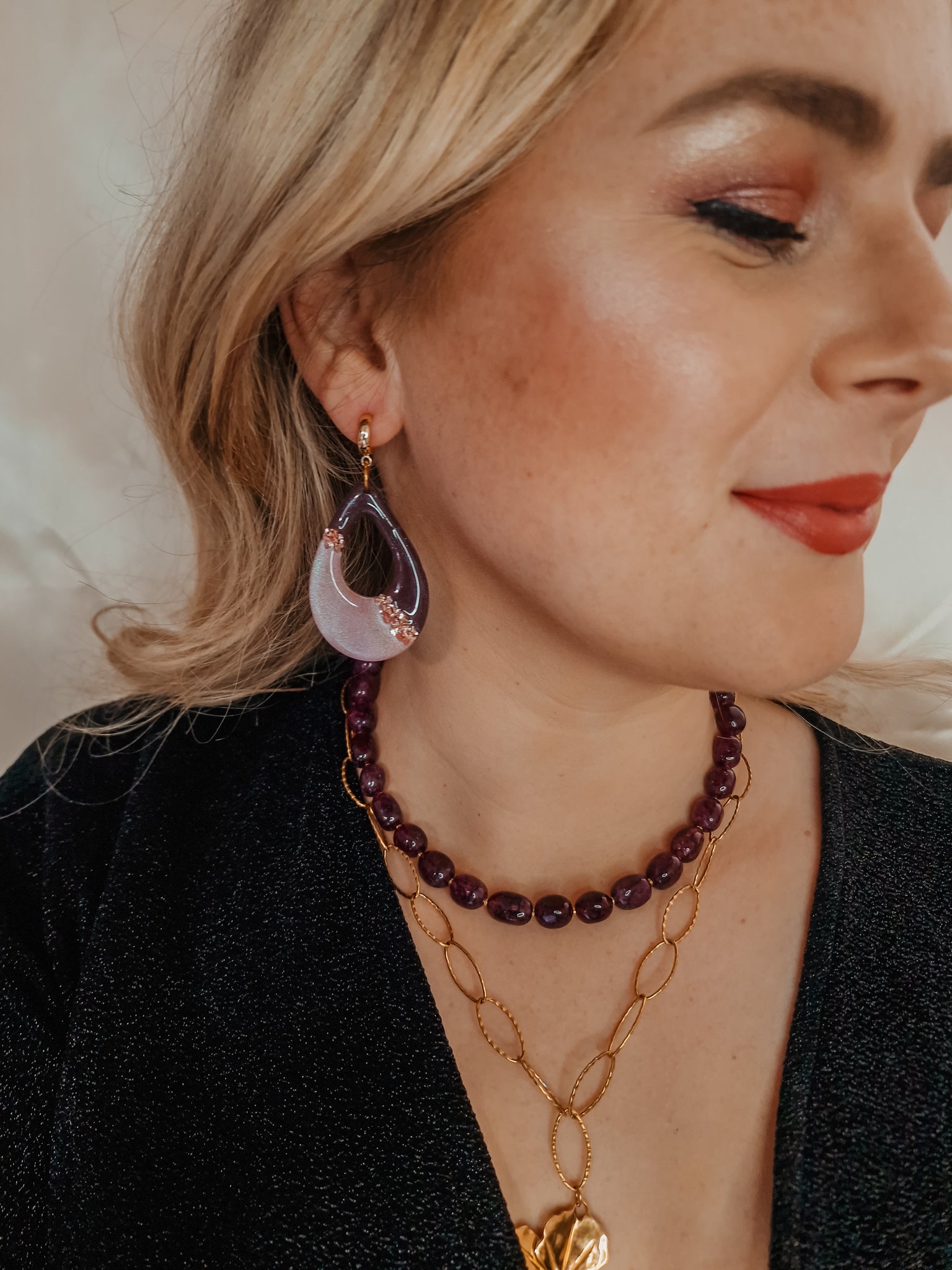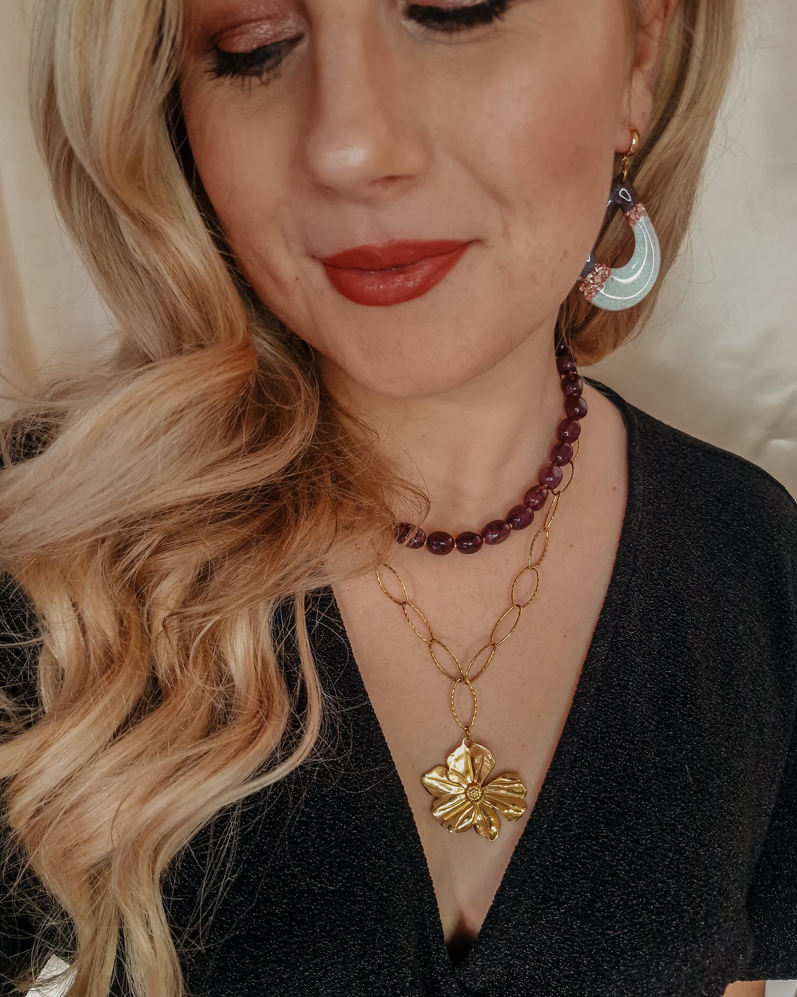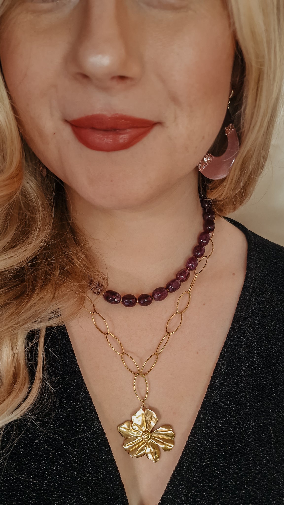 Breng de warme kleuren van het seizoen in je look met de Midnight Plum Stone ketting uit de Fall for Confidence collectie. Ontworpen om je stijl moeiteloos te versterken en je zelfvertrouwen te vergroten, zonder dat je je garderobe hoeft te vernieuwen!