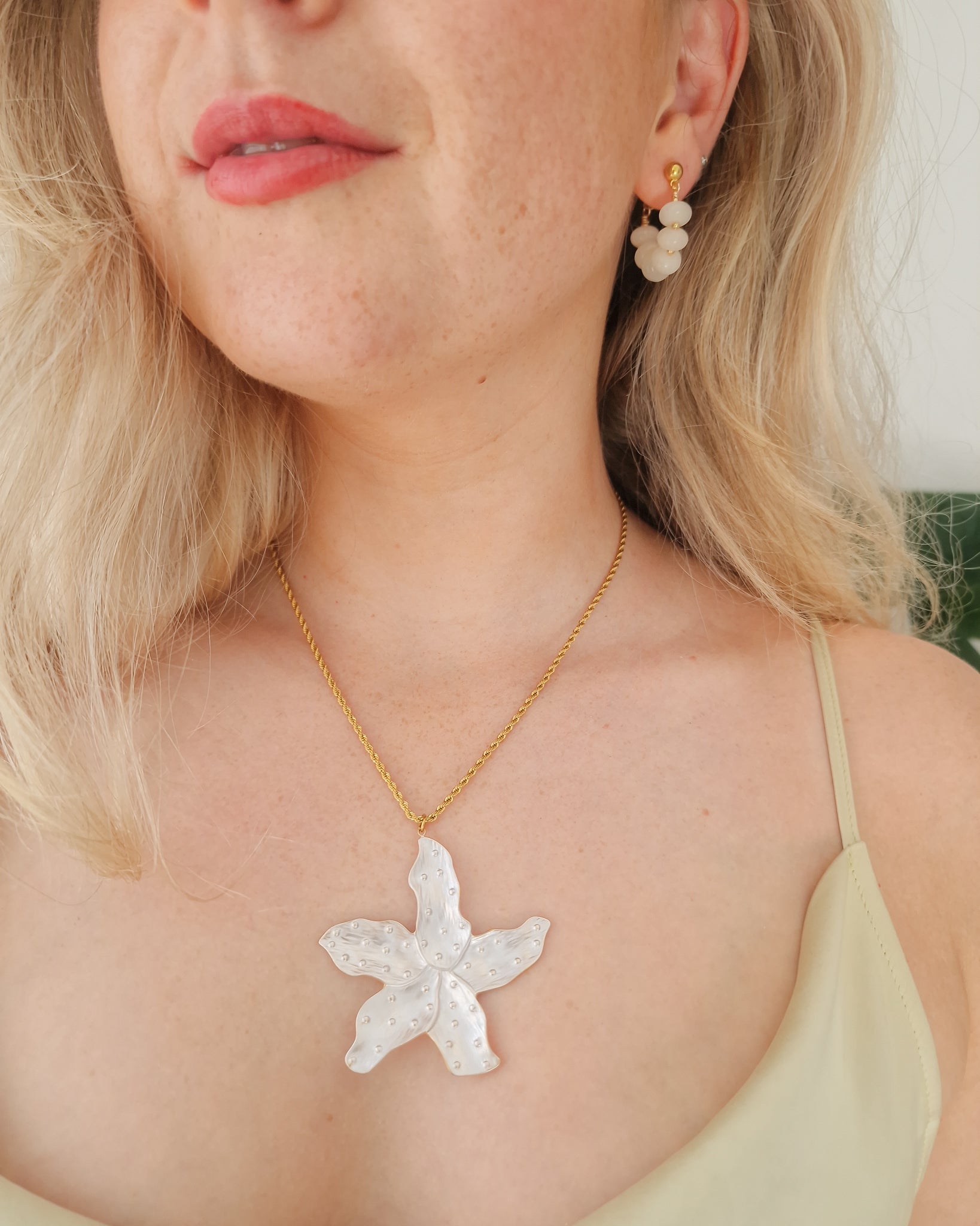 Ketting met grote ster bedel met parelmoer, van premium stainless steel.