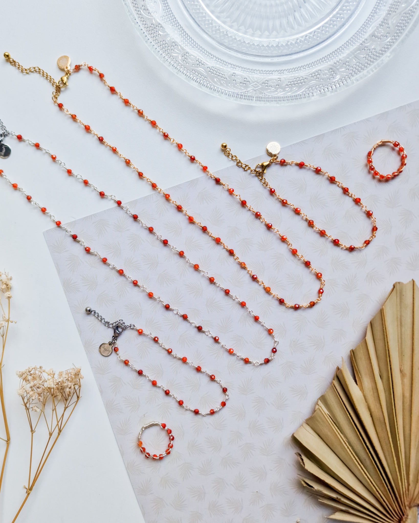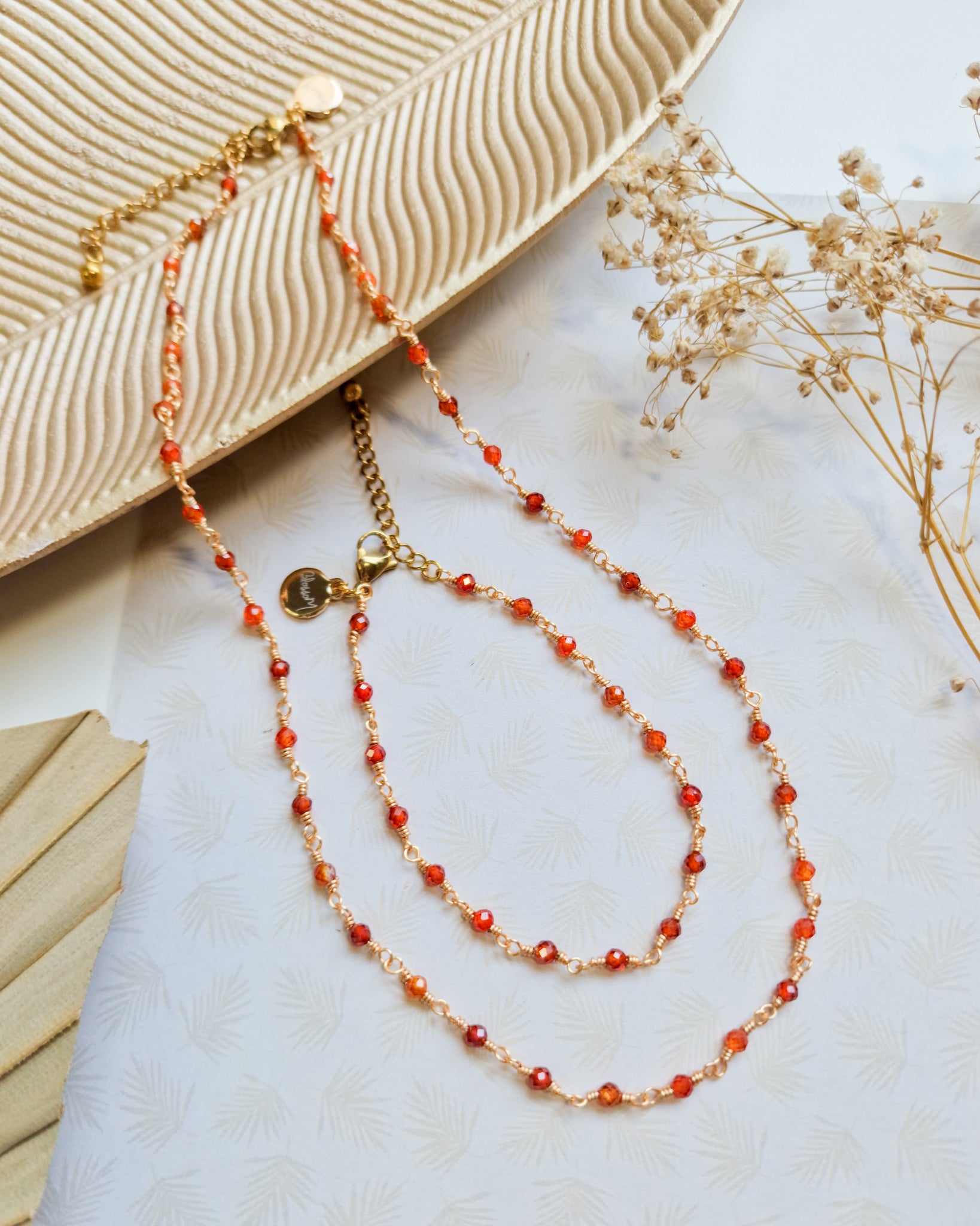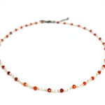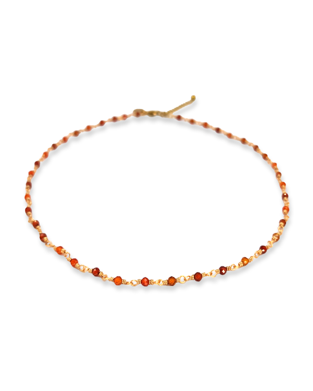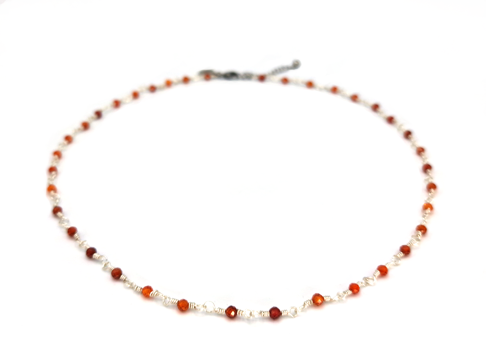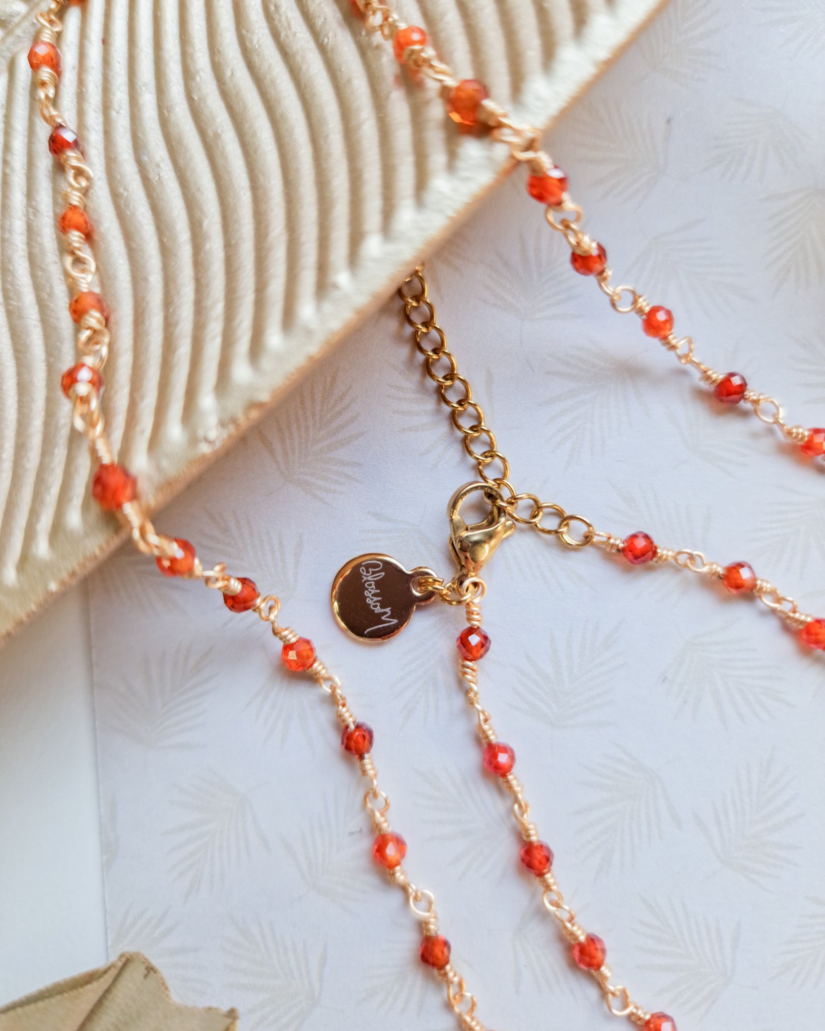 Wire-wrapped ketting met natuursteen Topaz oranje kraaltjes. Deze kraaltjes zijn facet geslepen waardoor ze een subtiele shimmer hebben.