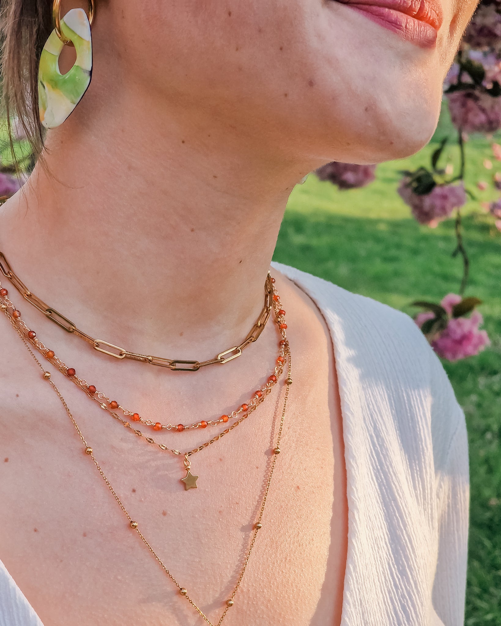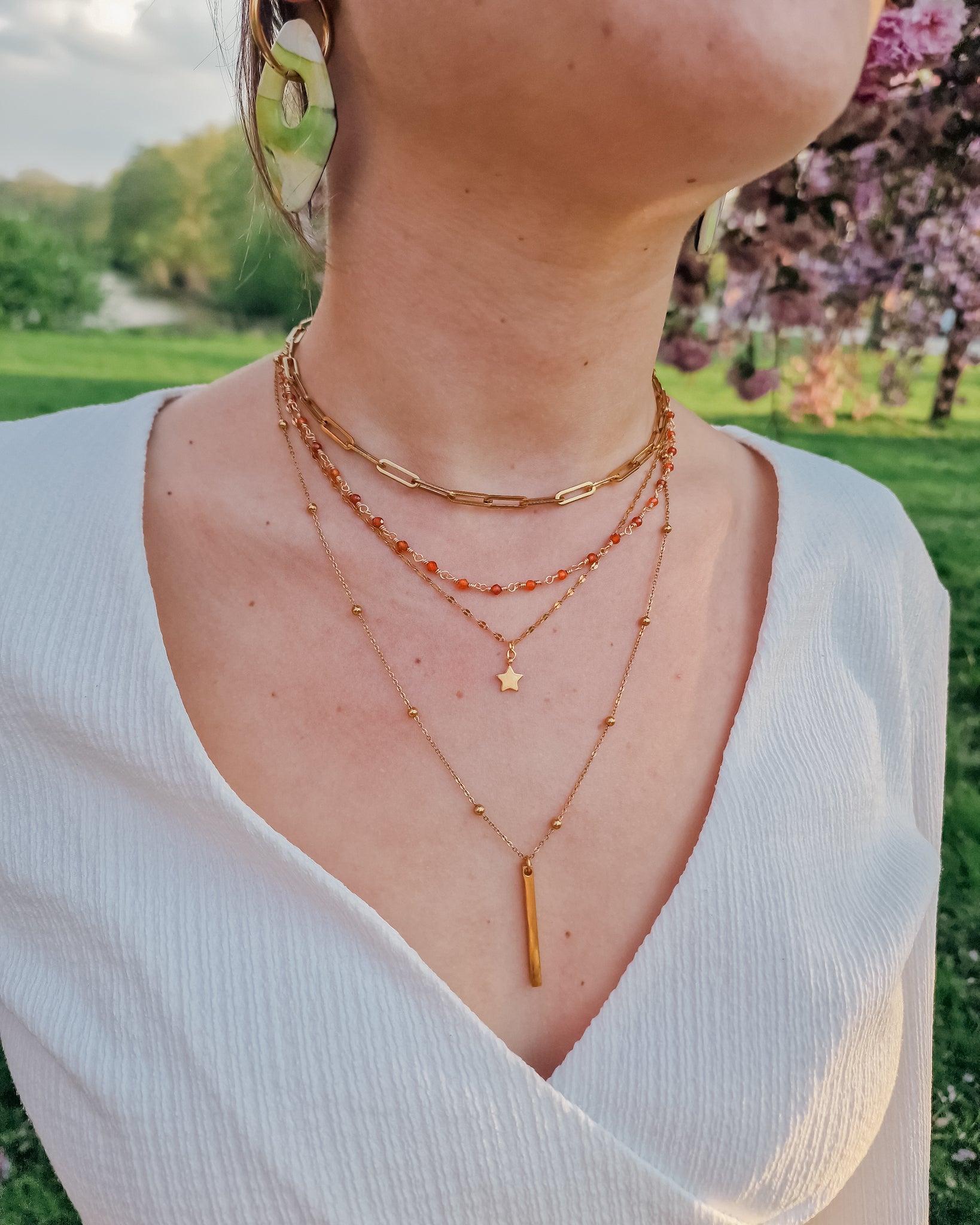Onze sieraden zijn gemaakt van hoogwaardige materialen die niet verkleuren en lang mooi blijven. Toch kun je met de juiste zorg hun glans en uitstraling nog langer behouden.✨