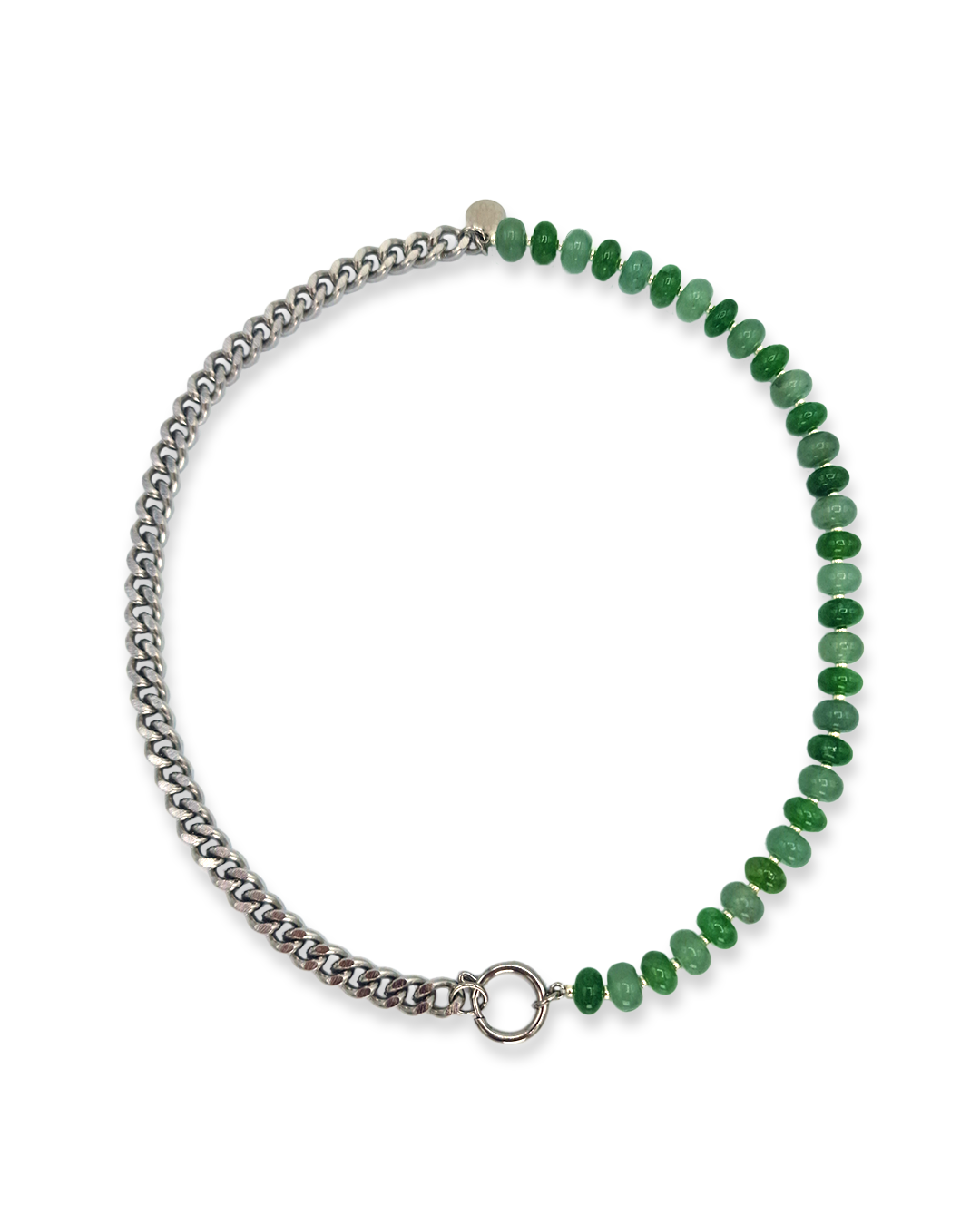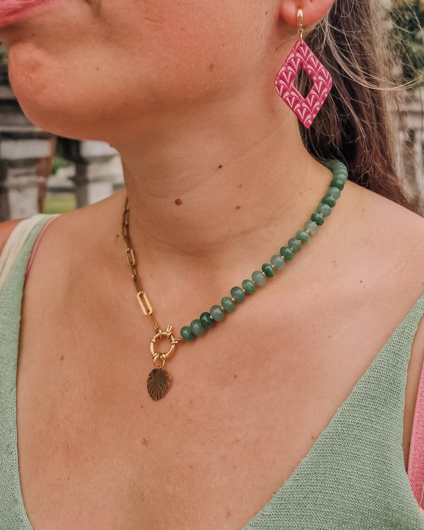 Ketting met natuursteen kralen en kleine glaskralen in groen mix kleur.