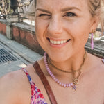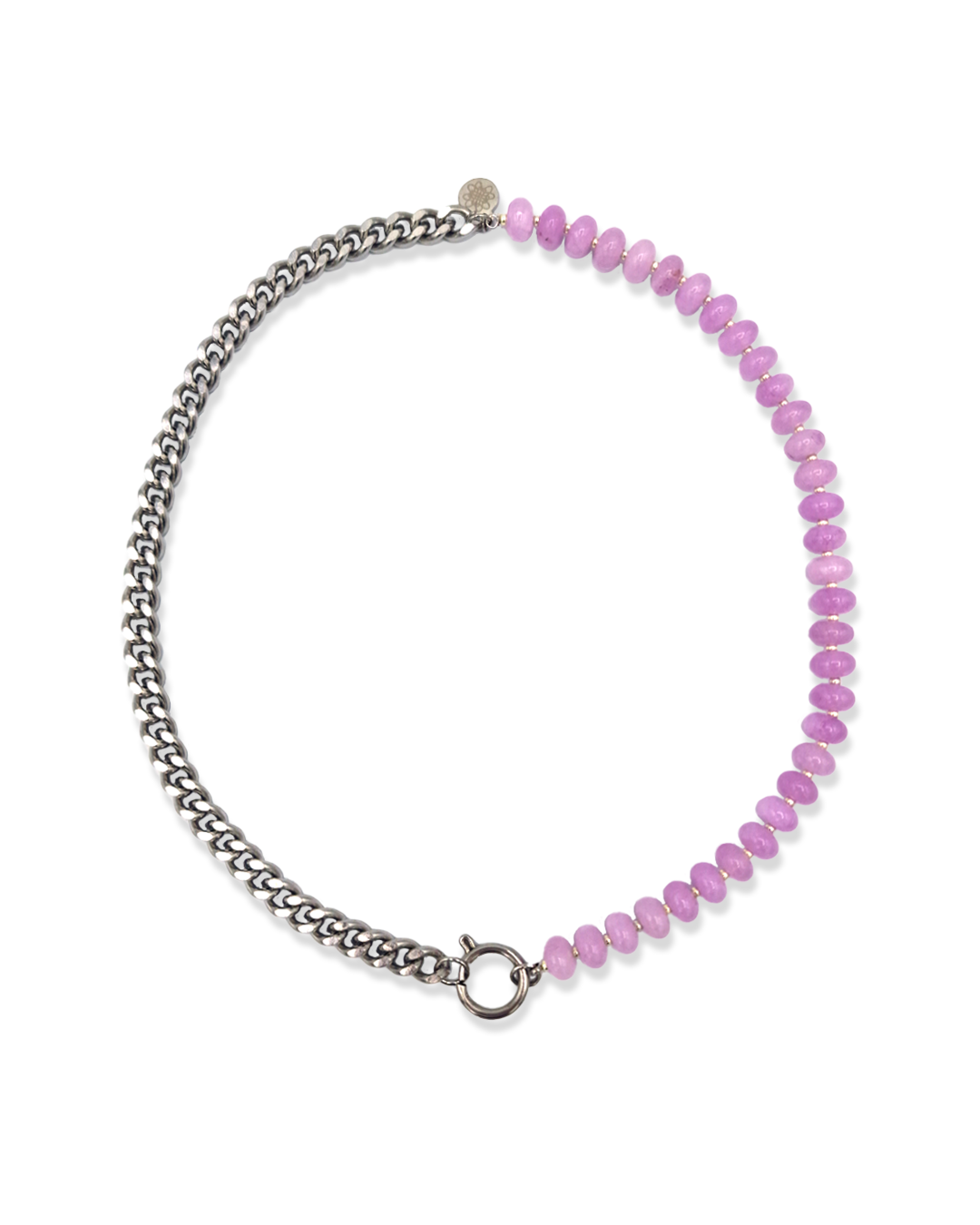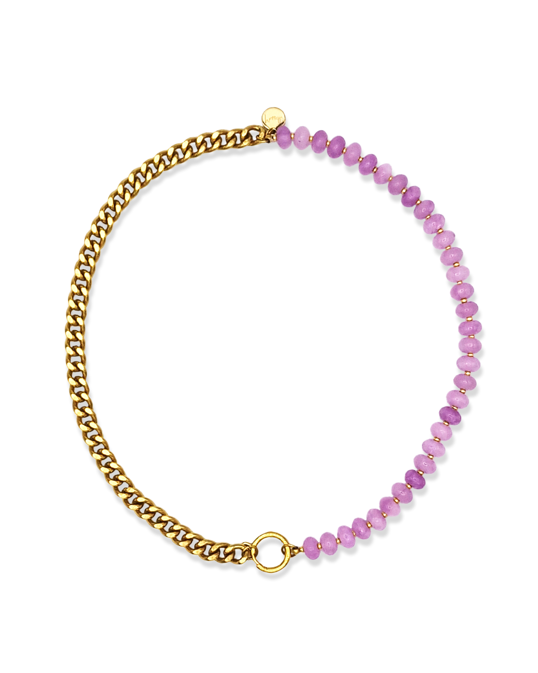 Ketting met natuursteen kralen en kleine glaskralen in lila kleur.