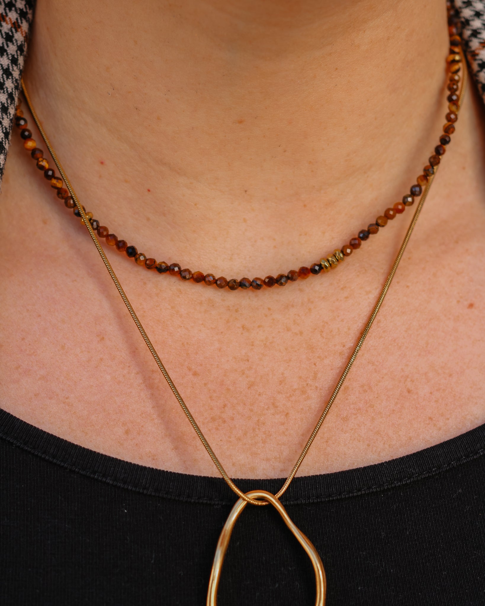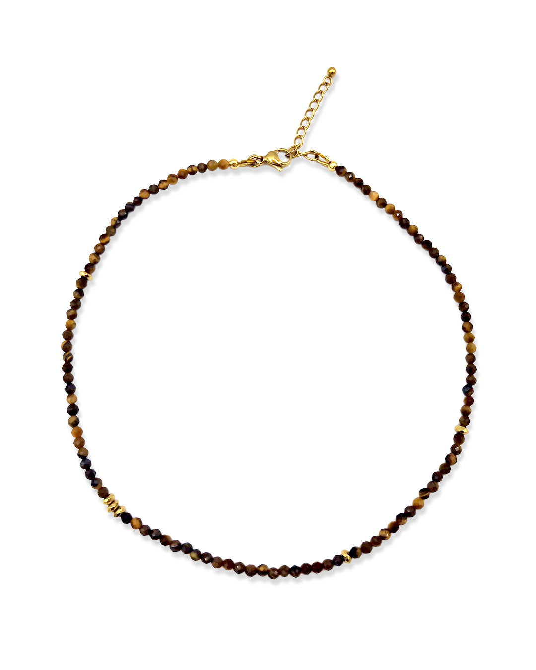 Breng de warme kleuren van het seizoen in je look met de Tiger Eye Faceted Mini Beads ketting uit de Fall for Confidence collectie. Ontworpen om je stijl moeiteloos te versterken en je zelfvertrouwen te vergroten, zonder dat je je garderobe hoeft te vernieuwen!