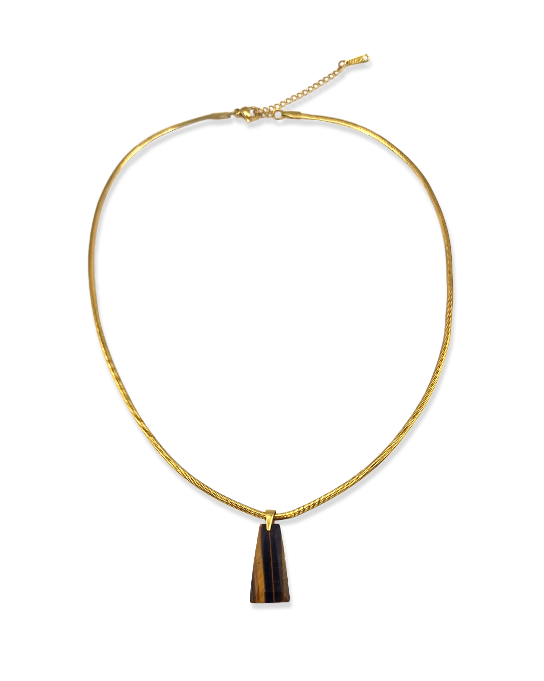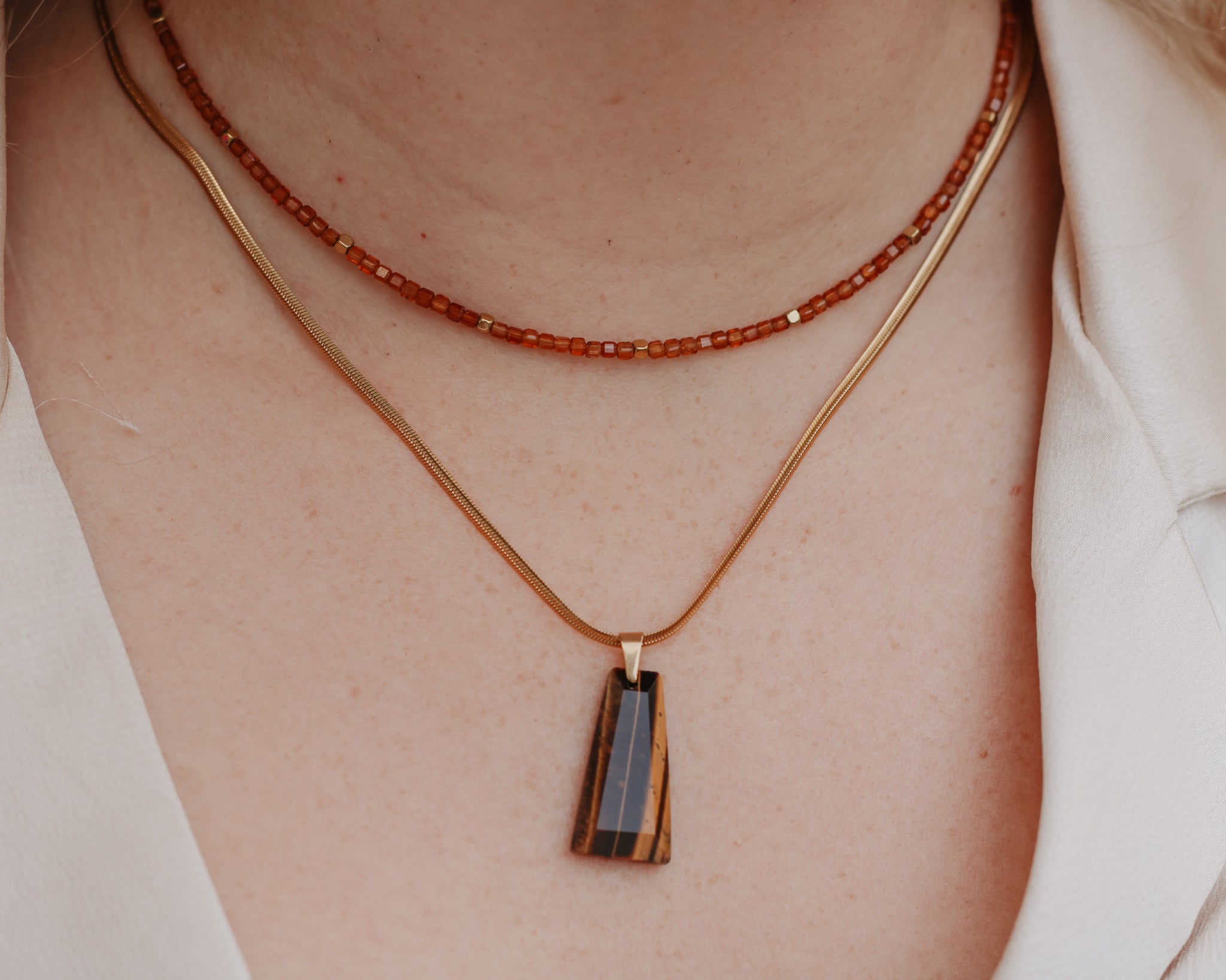 Breng de warme kleuren van het seizoen in je look met de Tiger Eye Pendant ketting uit de Fall for Confidence collectie. Ontworpen om je stijl moeiteloos te versterken en je zelfvertrouwen te vergroten, zonder dat je je garderobe hoeft te vernieuwen!