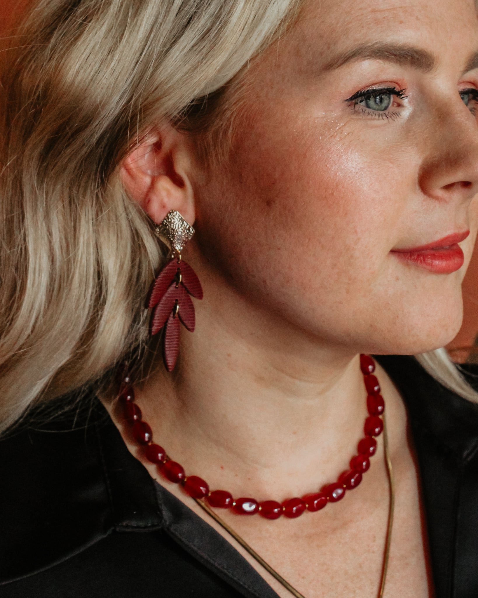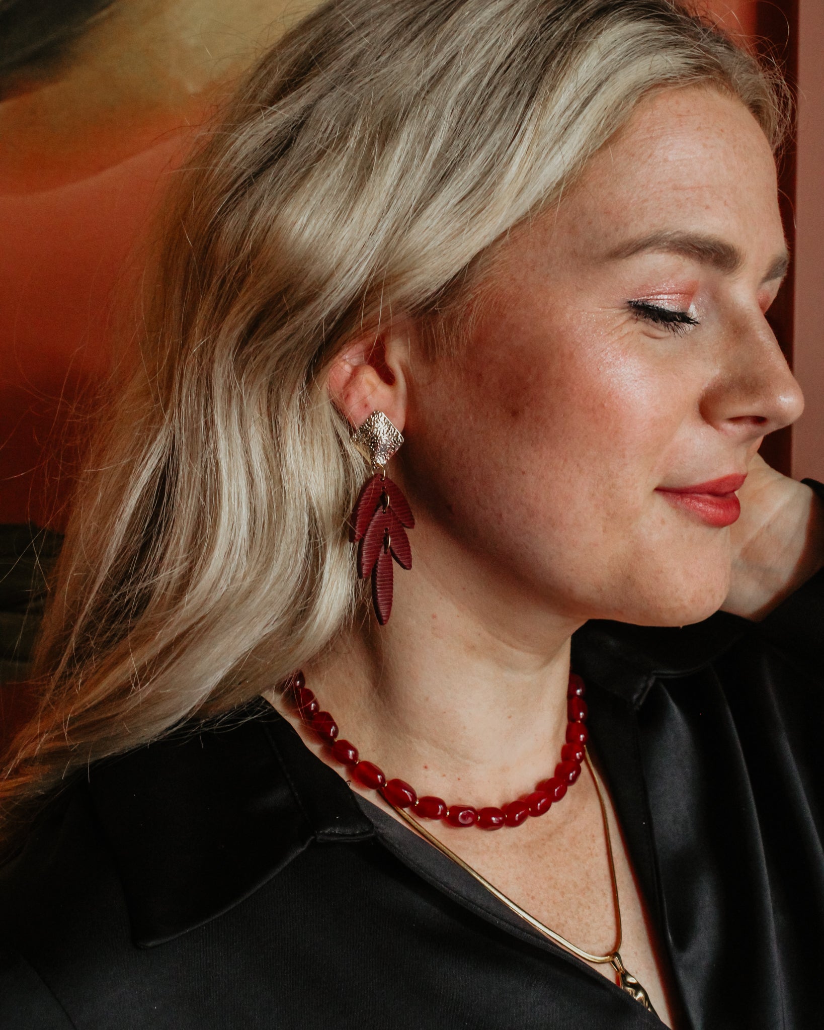 Breng de warme kleuren van het seizoen in je look met de Burgundy Lily oorbellen uit de Fall for Confidence collectie. Ontworpen om je stijl moeiteloos te versterken en je zelfvertrouwen te vergroten, zonder dat je je garderobe hoeft te vernieuwen!
