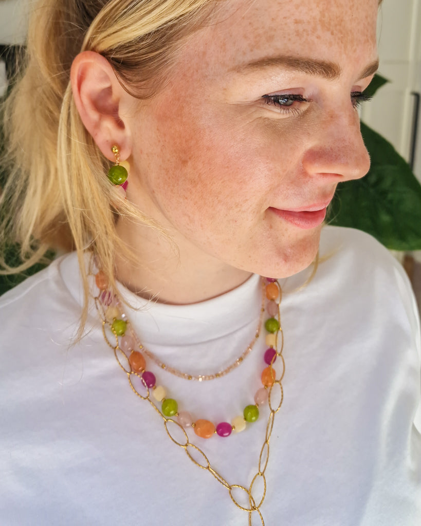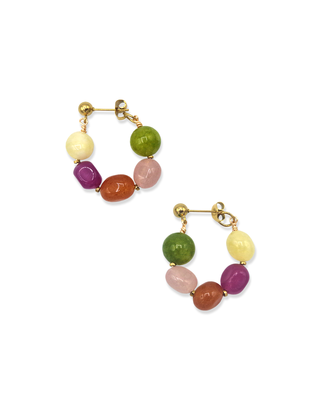 Zeg hallo tegen instant vrolijkheid! Deze kleurrijke hoops zijn een feestje voor je oren, en je outfit. De zomerse kralen in frisse tinten zorgen voor een speelse look met bold karakter.