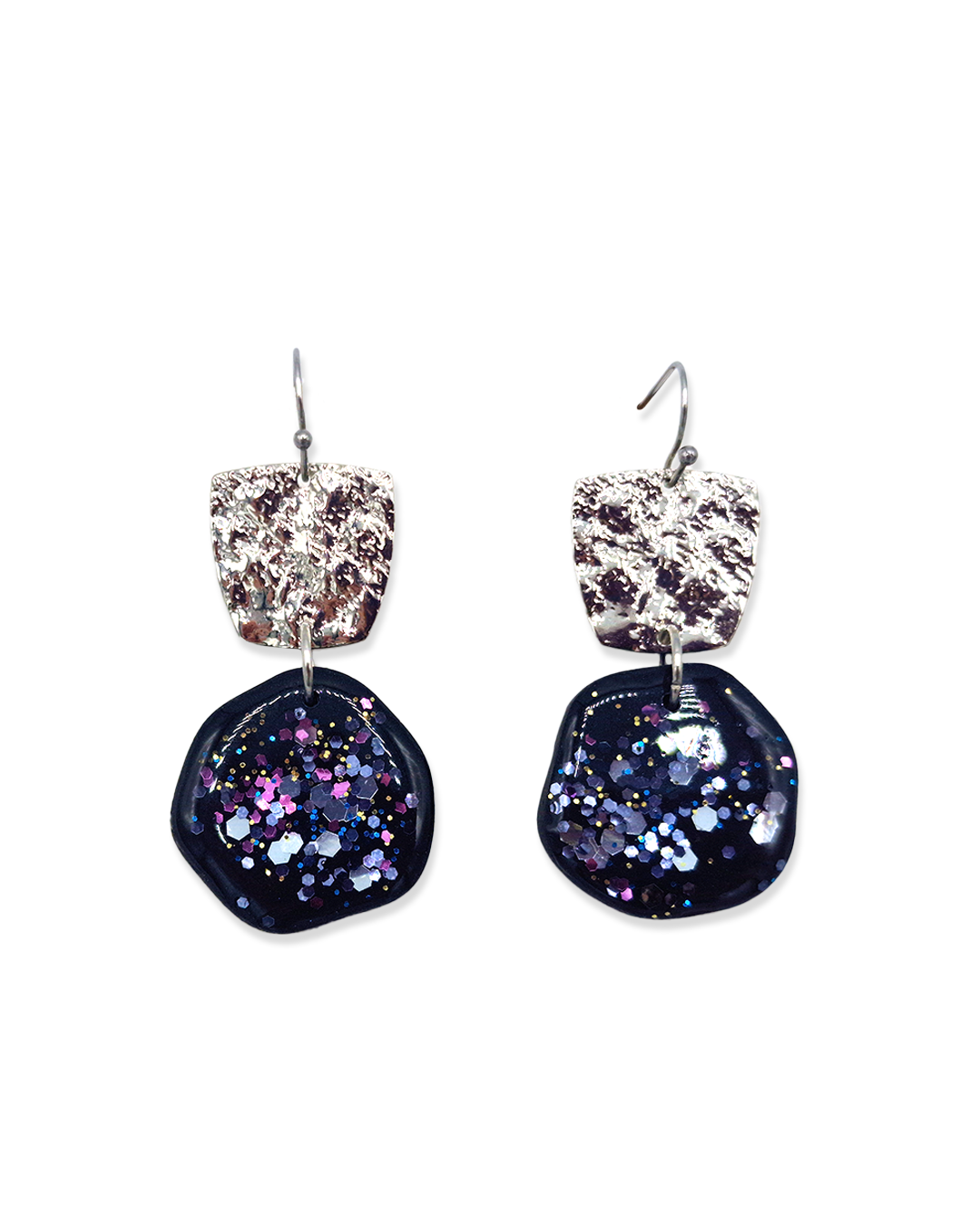 Oorbellen Charcoal Black Silver Glitters Round