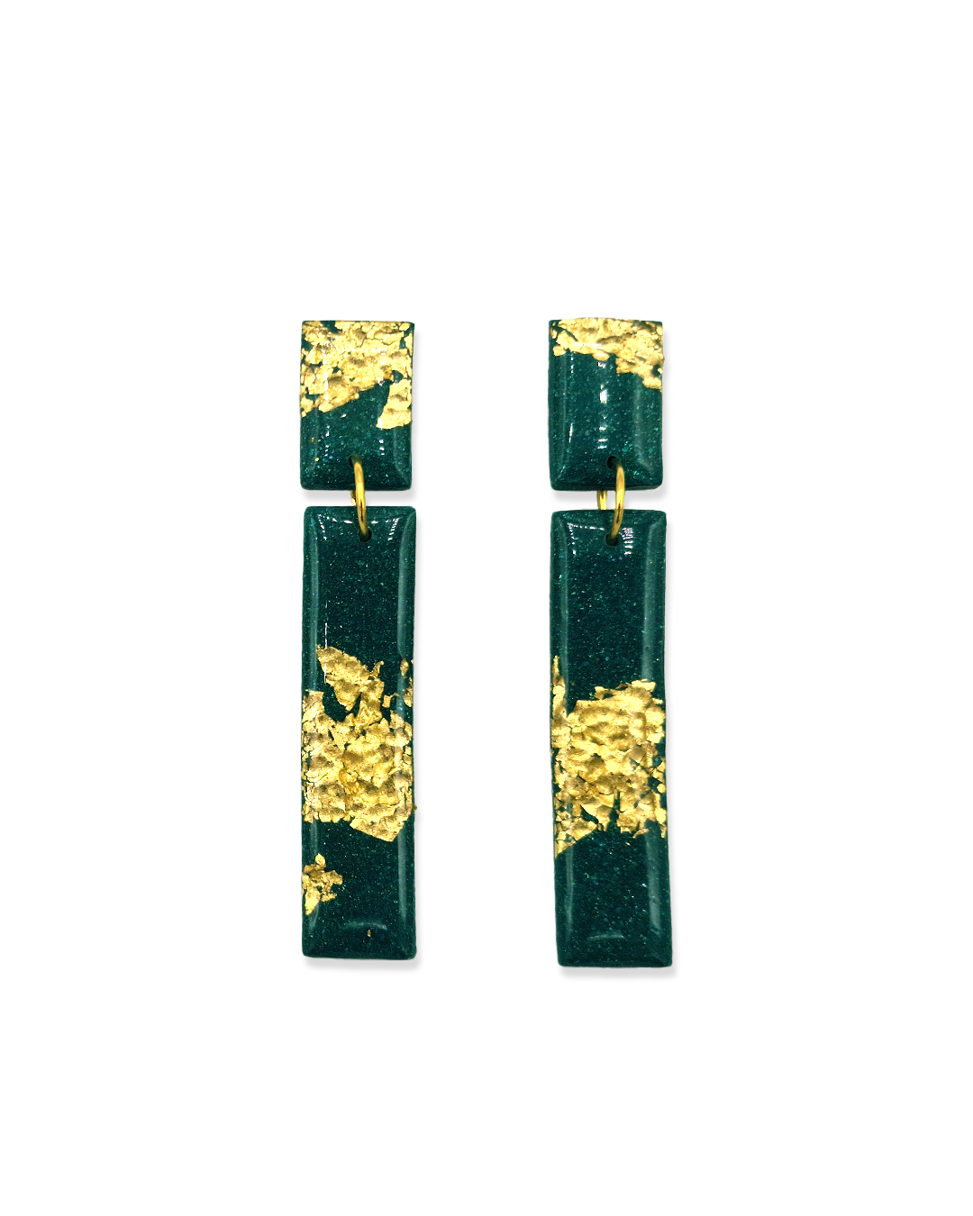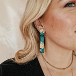 Oorbellen Emerald Tree Green Golden Rectangle