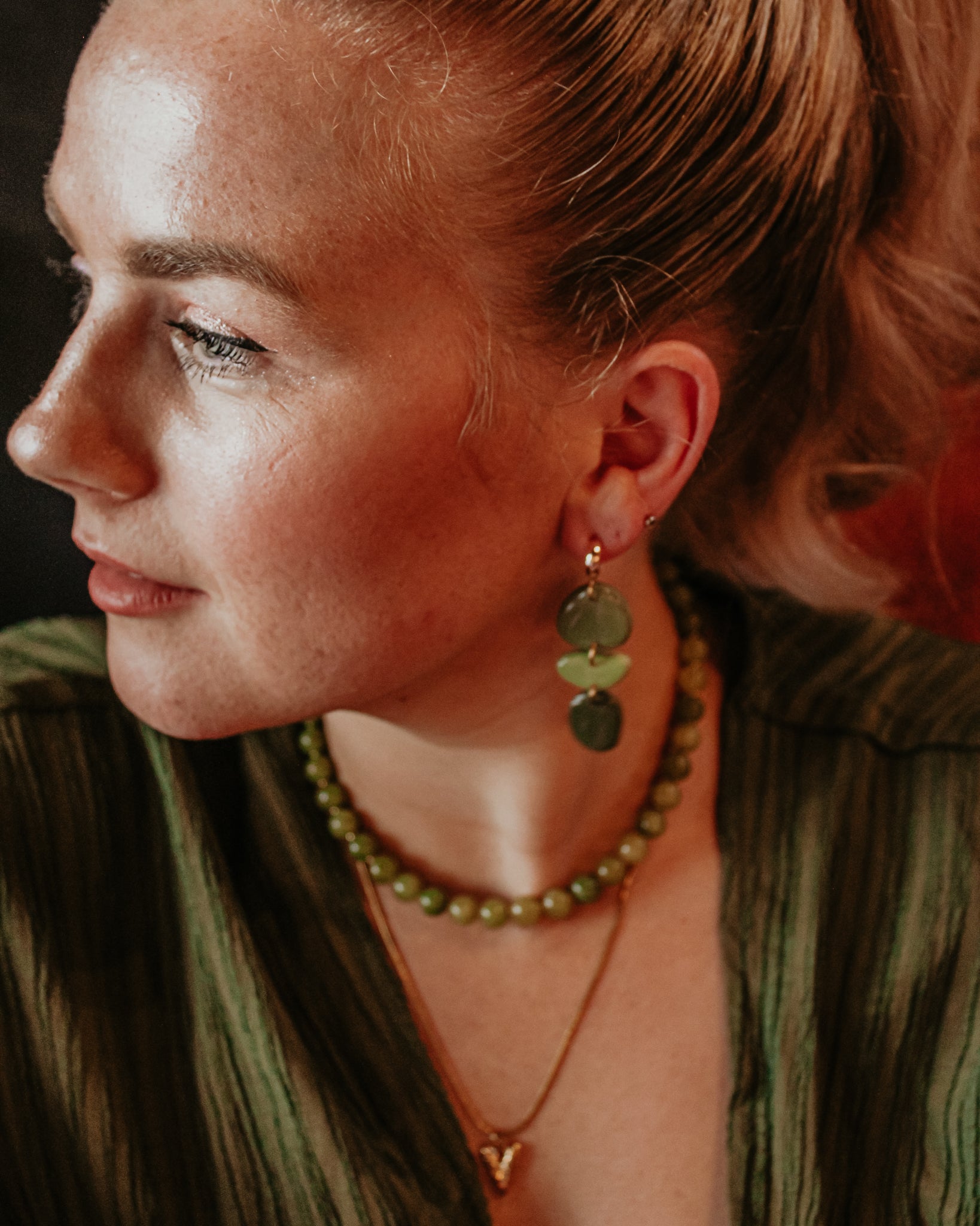 Breng de warme kleuren van het seizoen in je look met de Matcha Green Pebbles oorbellen uit de Fall for Confidence collectie. Ontworpen om je stijl moeiteloos te versterken en je zelfvertrouwen te vergroten, zonder dat je je garderobe hoeft te vernieuwen!