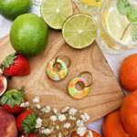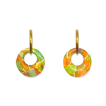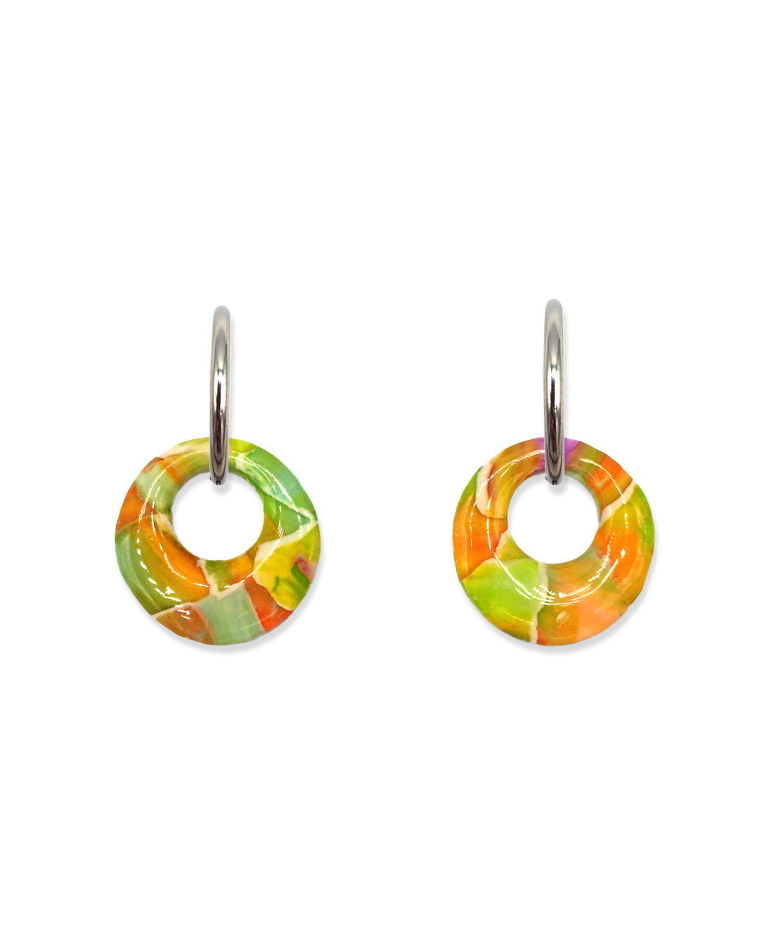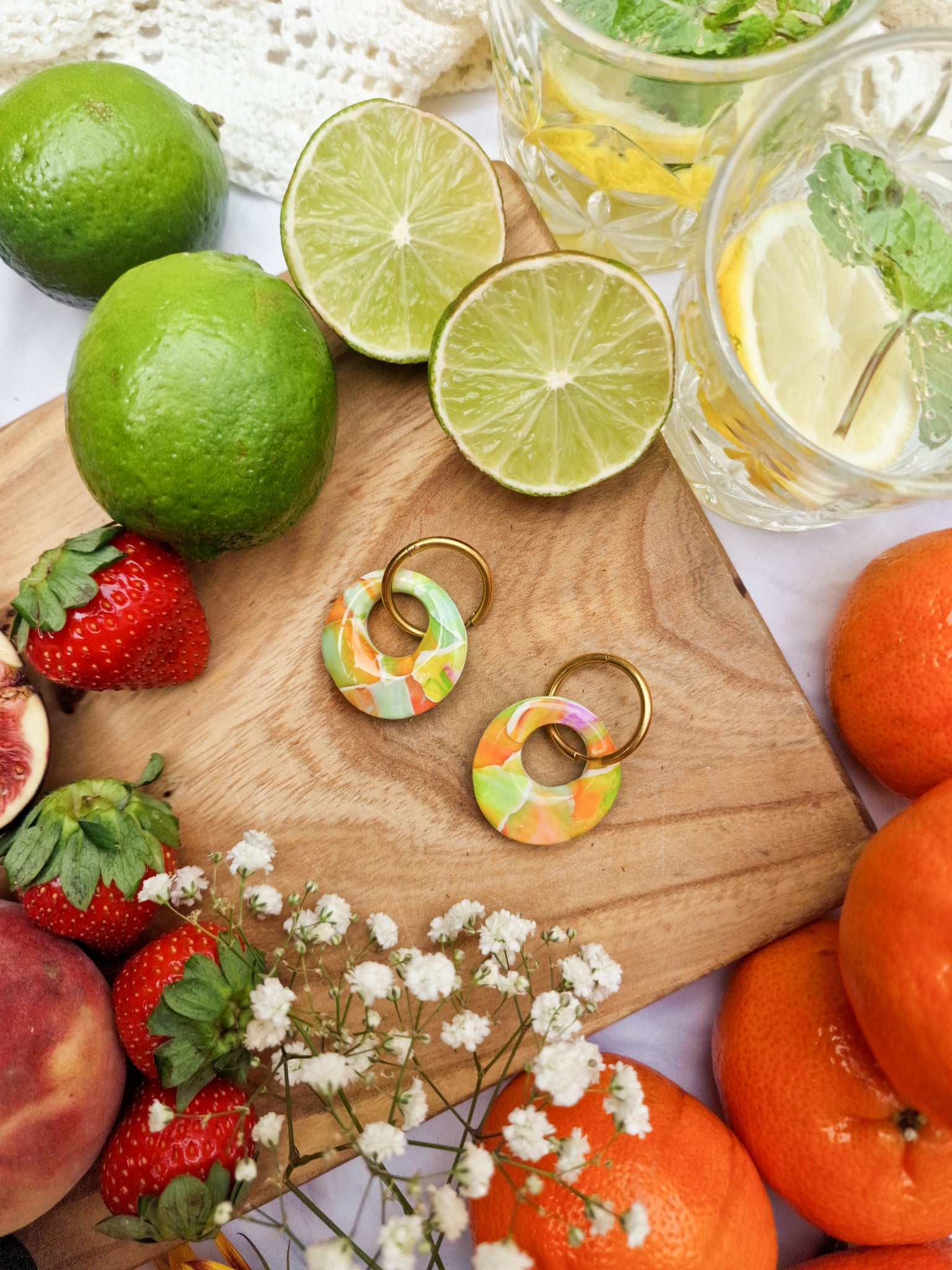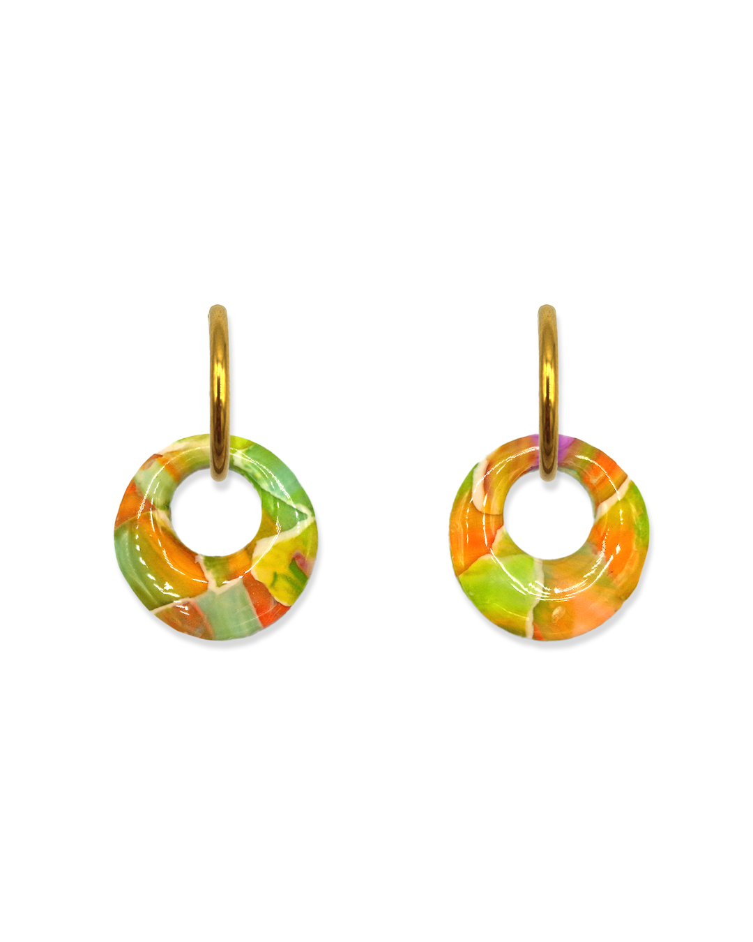 Lichtgewicht klei oorbellen met groen, oranje, crème watercolor effect. Deze oorbellen zijn dubbelzijdig, met op de achterkant een hele mooie groene kleur. Ze zijn makkelijk om te draaien!