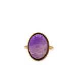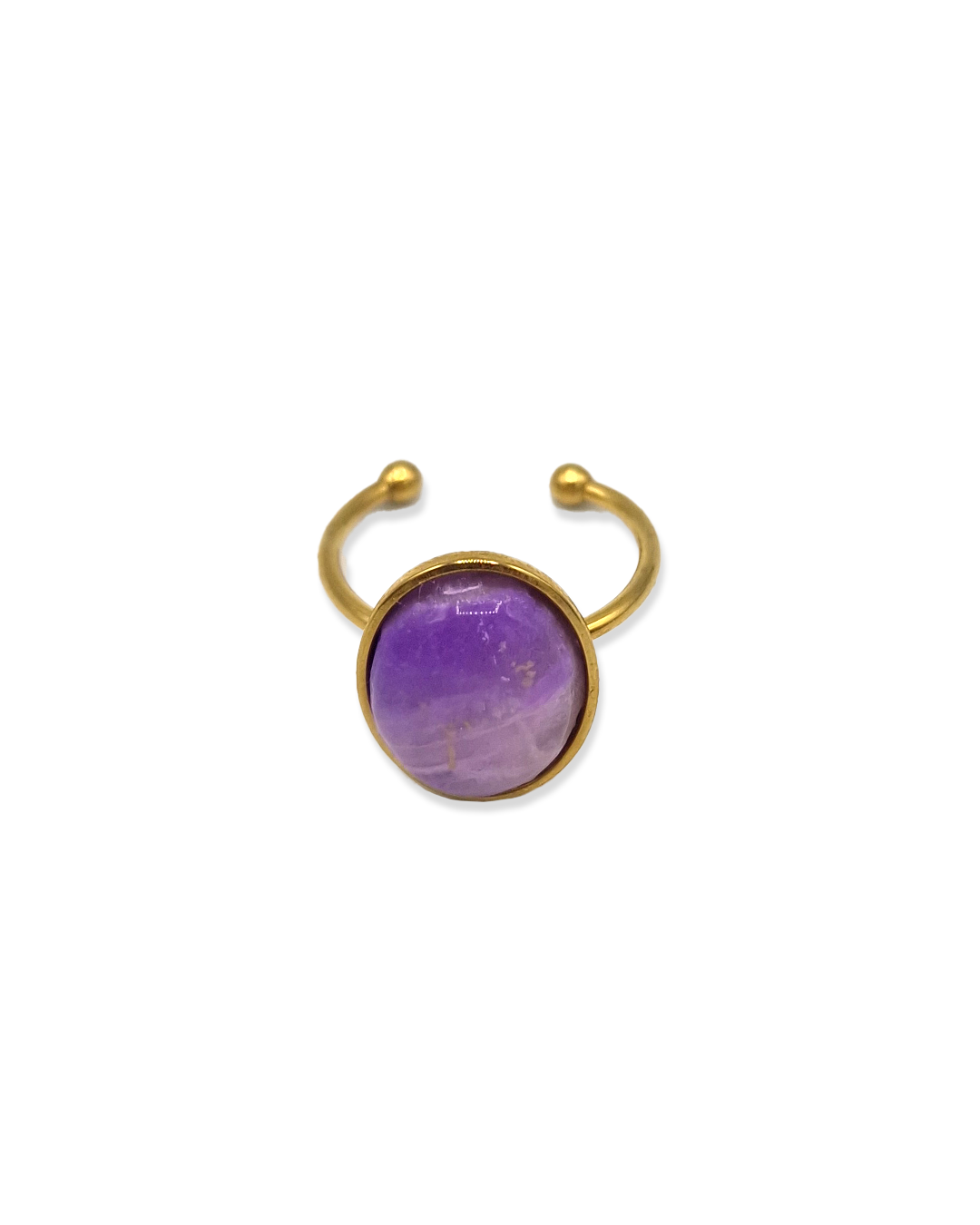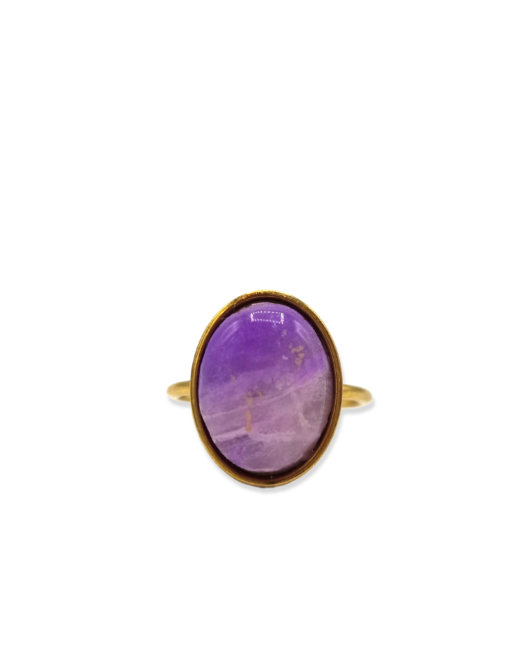 Deze ring is een echte eyecatcher. De ovale, paarse steen met subtiele kleurverlopen geeft je look net dat beetje extra, of je 'm nu solo draagt of combineert met je favoriete sieradenstack. De verstelbare band zorgt ervoor dat 'ie altijd past.