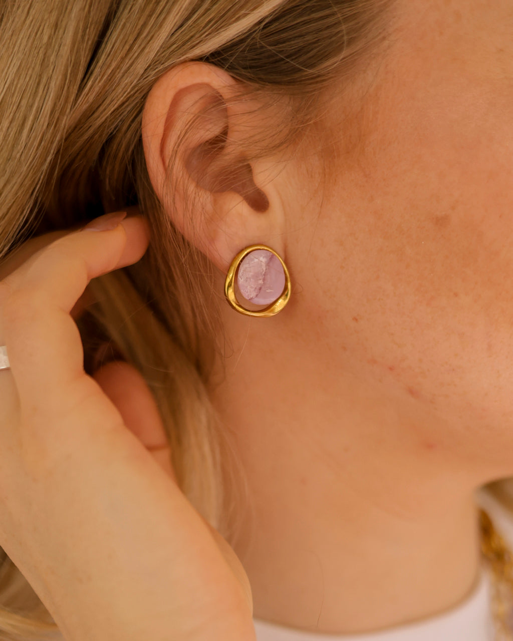 Geef je look een moderne upgrade met de Purple Mini Studs. Het organische goudkleurige frame rond de paarse kern geeft je stijl een frisse twist. Door hun subtiele formaat zijn deze studs de perfecte match bij een slickback bun; ze trekken precies genoeg aandacht zonder je gezicht te overstemmen. Een krachtige keuze voor je dagelijkse rotatie. ✨💜