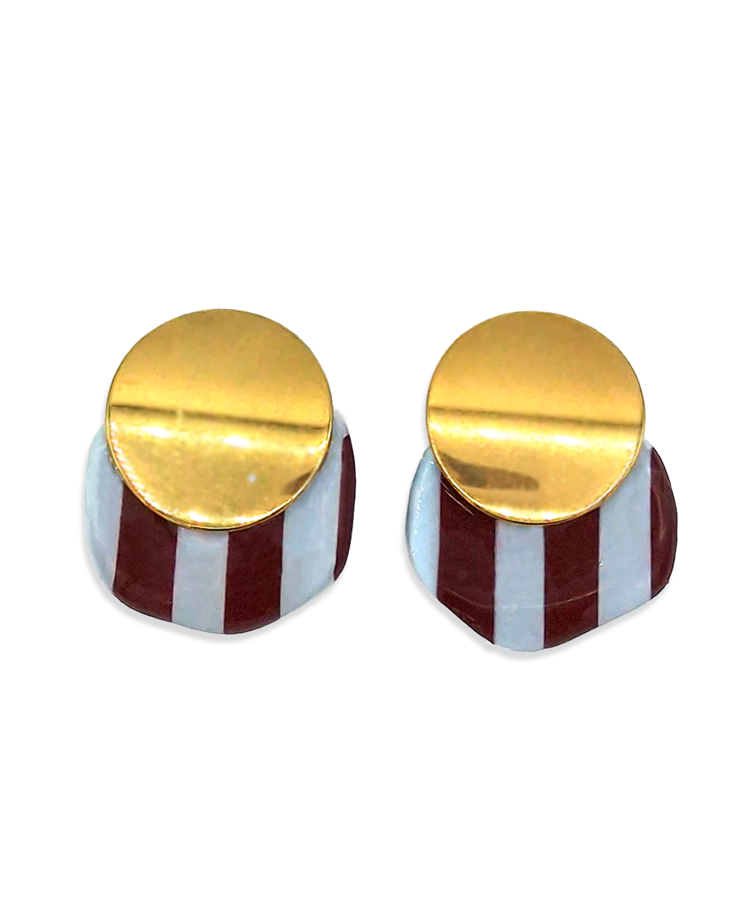 Oorbellen Oval Burgundy & Blue Stripes Disc Studs